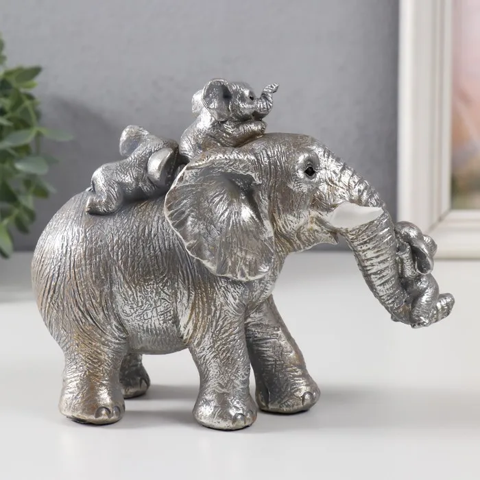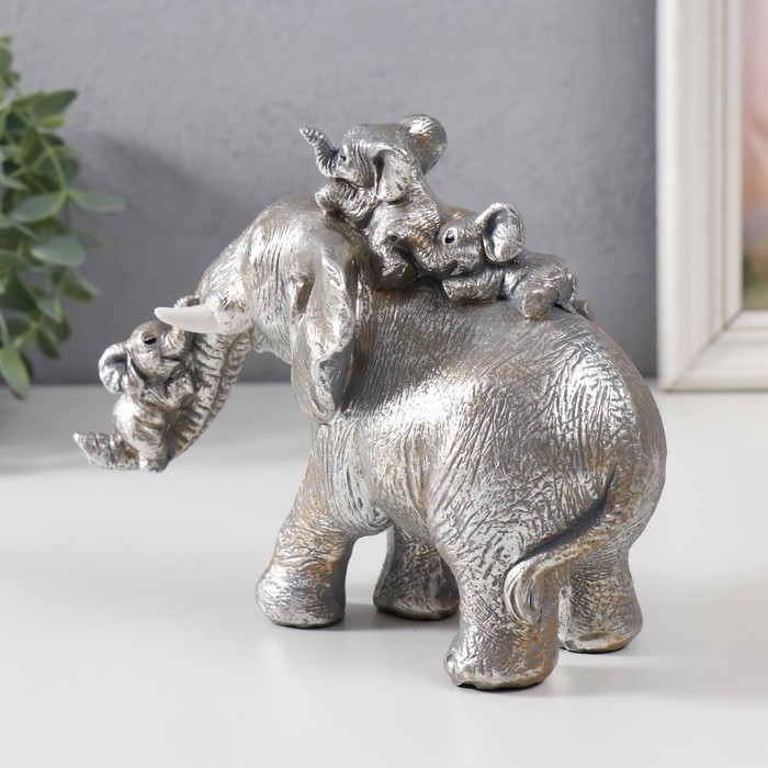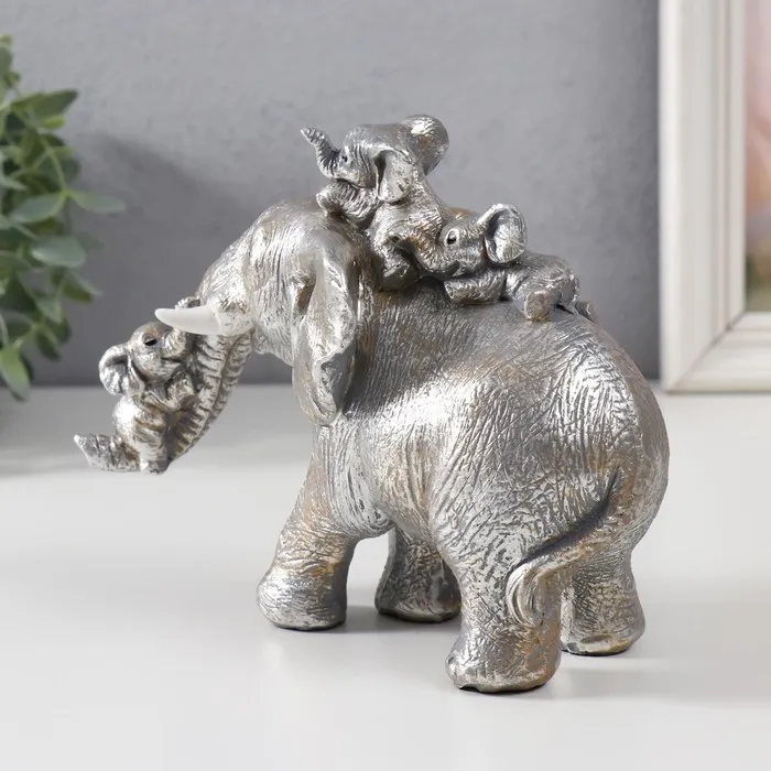 Фигурка полистоун «Веселые слонята едут на большом слоне», 18.5×9×15 см — Характеристики