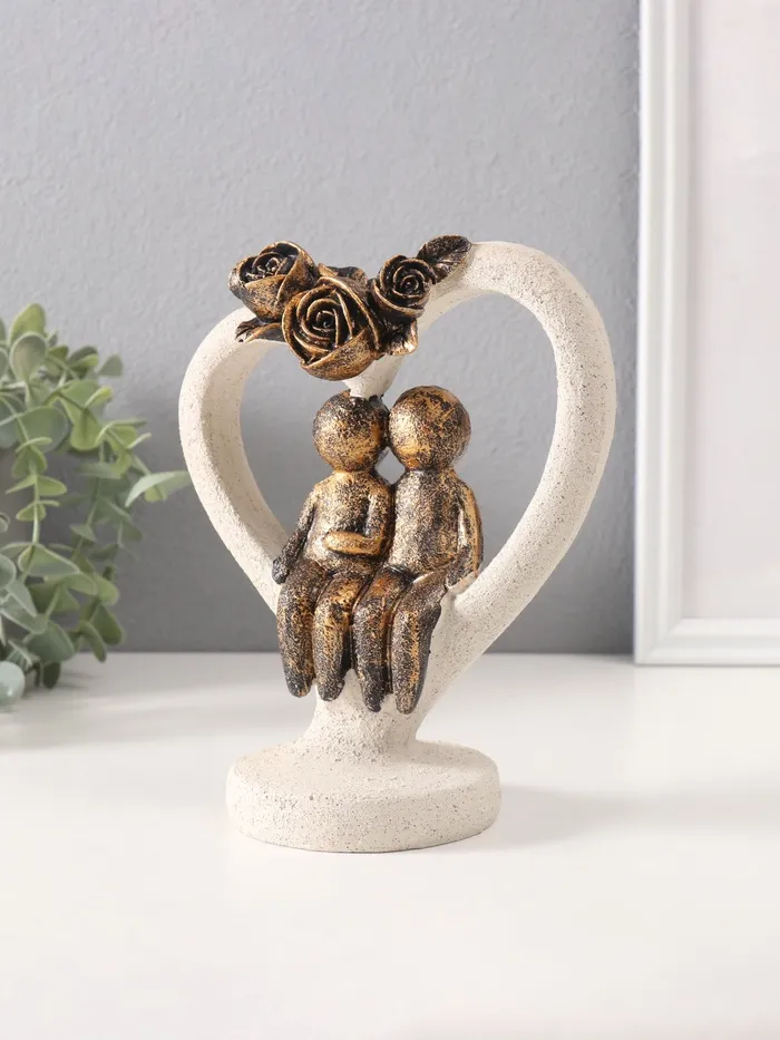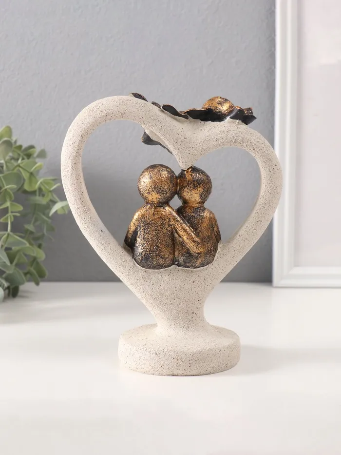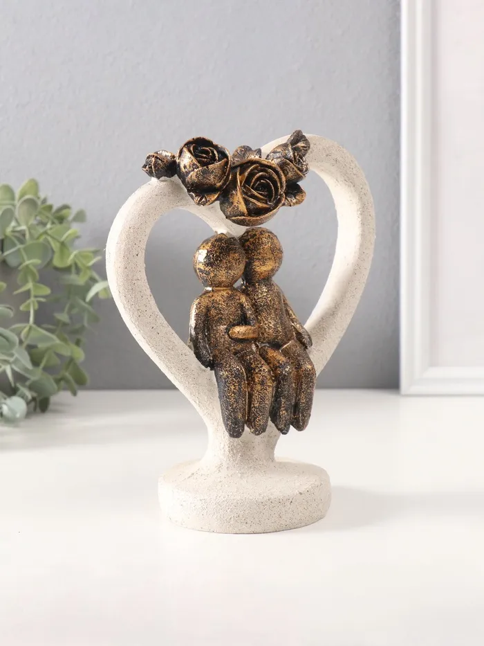 Фигурка полистоун «Влюблённые человечки в каменном сердце с розами», под бронзу, 8.8×15.7×20 см — Характеристики