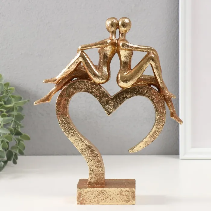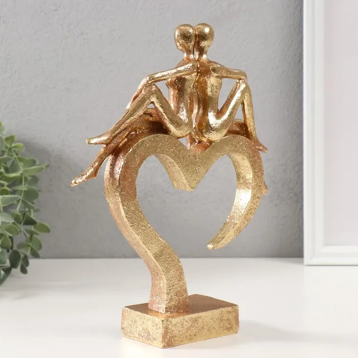 Фигурка полистоун «Влюблённые на сердце», золото, 26×22×6 см — Характеристики