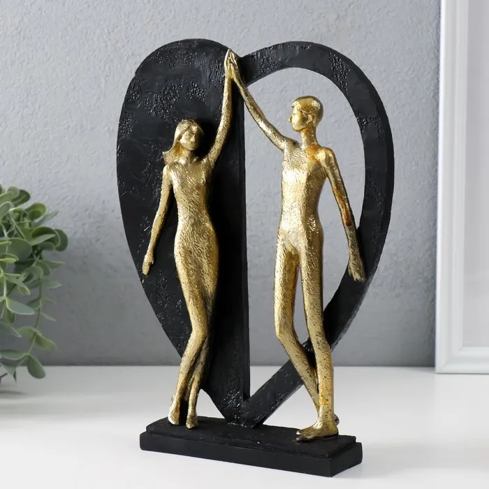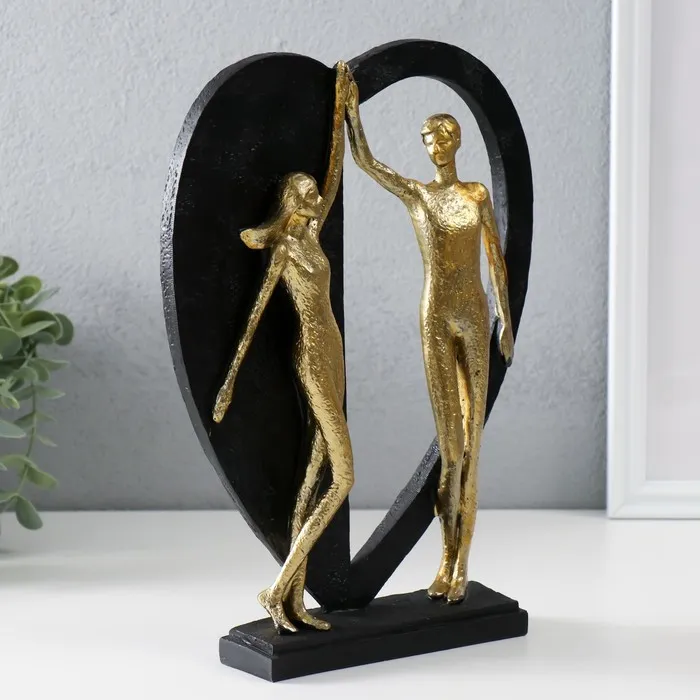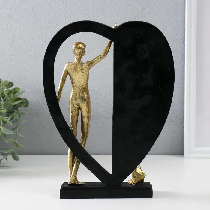 Фигурка полистоун «Влюблённые у большого сердца», золото с чёрным, 20×4.5×27.5 см — Характеристики