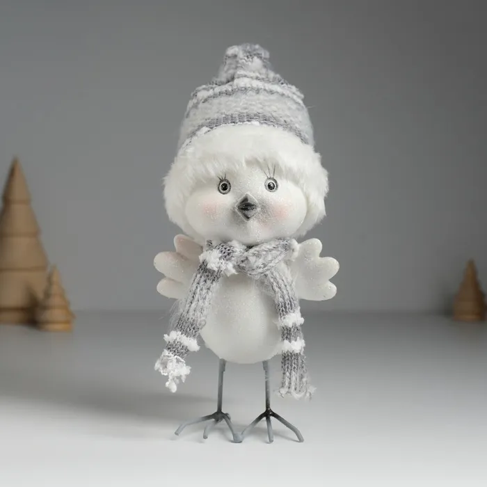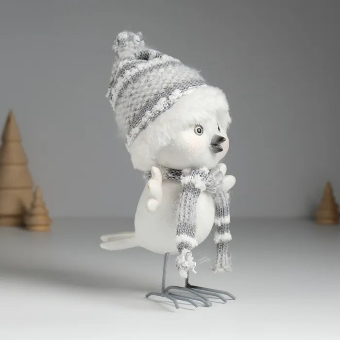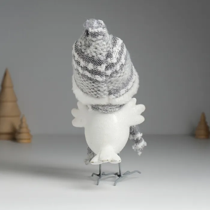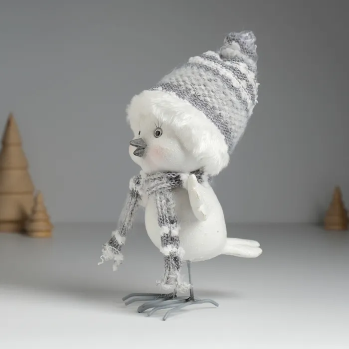 Фигурка полистоун «Воробушек белый в шапке с мехом», 9×11×16.5 см — Характеристики