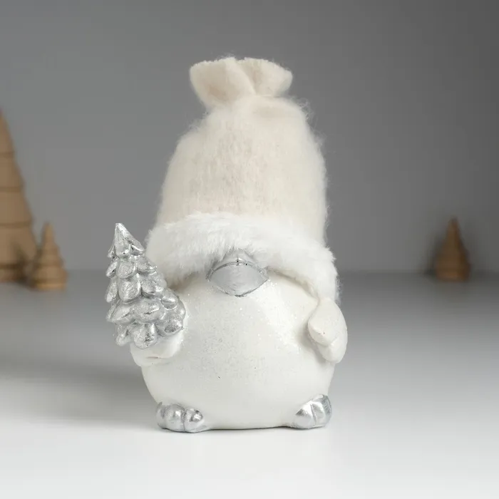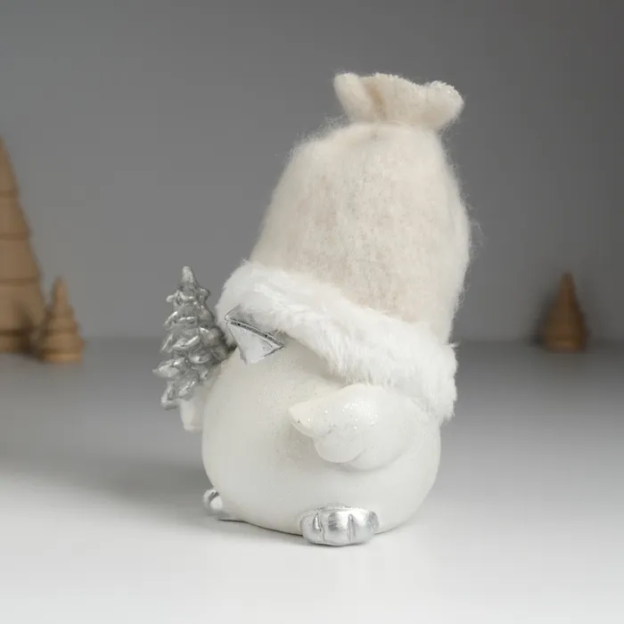 Фигурка полистоун «Воробушек в шапке с серебристой ёлкой», 10×8.5×13 см — Характеристики