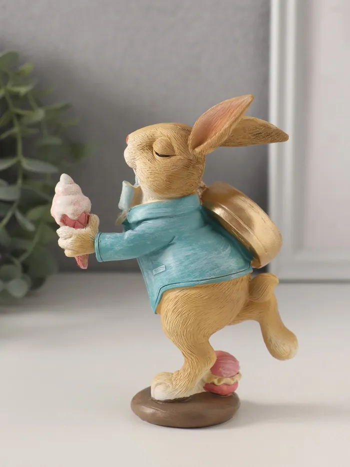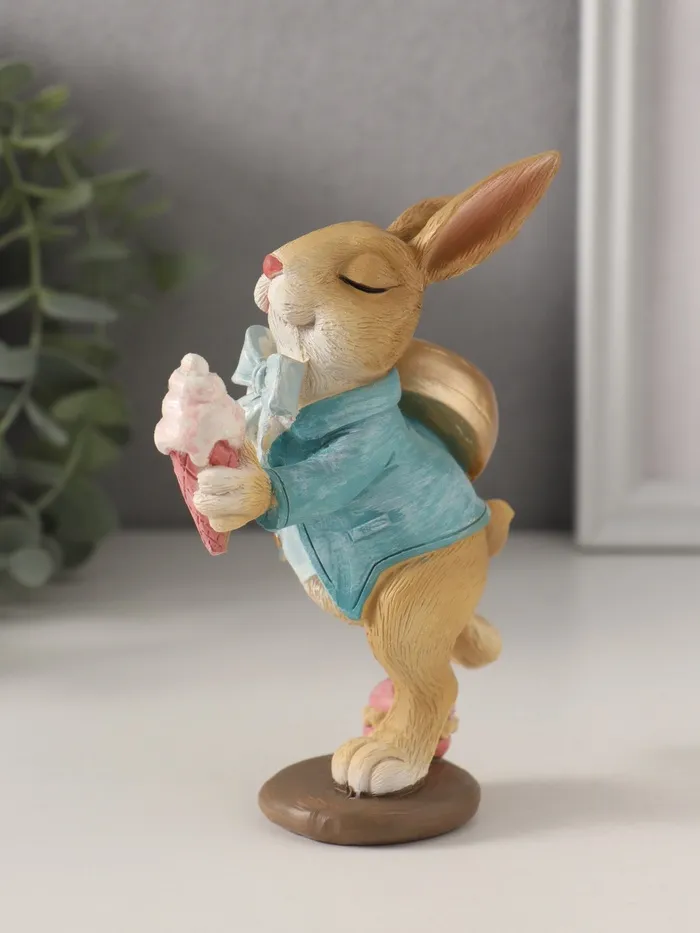 Фигурка полистоун «Заяц с карманными часами и мороженым», голубой, 10×6×13.5 см — Характеристики