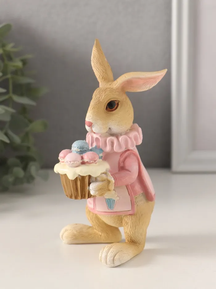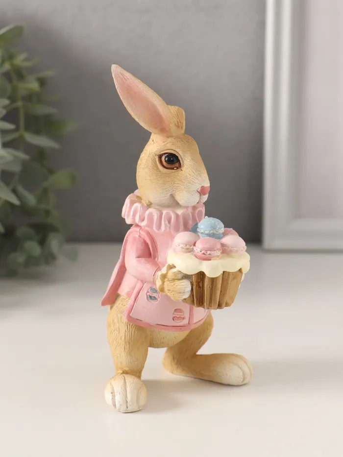 Фигурка полистоун «Заяц с кексом с макарунами, в розовом», 8×7×13.5 см — Характеристики