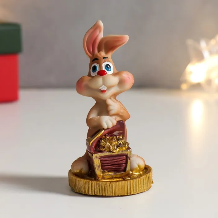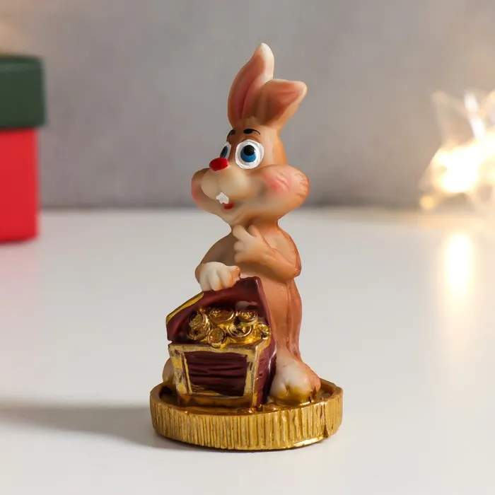 Фигурка полистоун «Заяц с сундуком монет», 4.5×4.5×8.5 см, МИКС — Характеристики