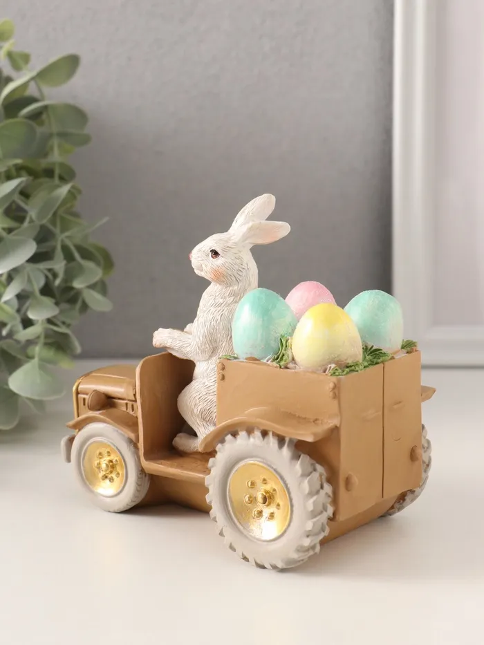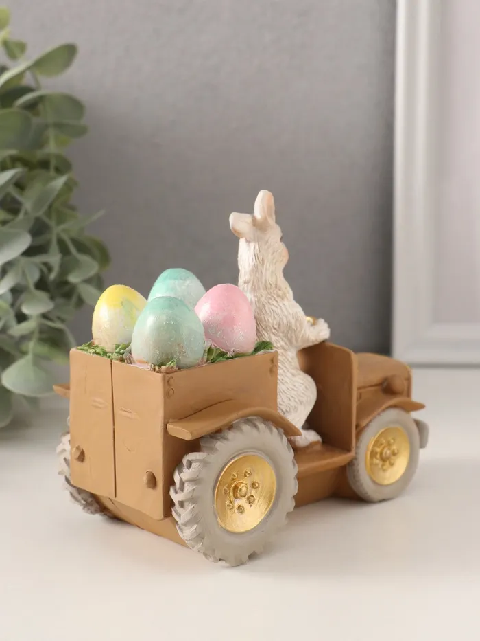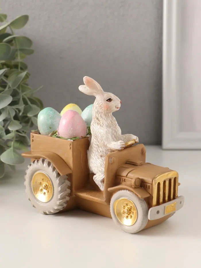 Представляем вам очаровательную фигурку, которая станет ярким акцентом вашего сада или интерьера — зайца-тракториста с пасхальными яичками в кузове. Эта декоративная статуэтка изготовлена из полистоуна, материала, который сочетает в себе прочность и долговечность. Благодаря своей многоцветности, фигурка привнесет в ваше пространство радость и праздничное настроение.