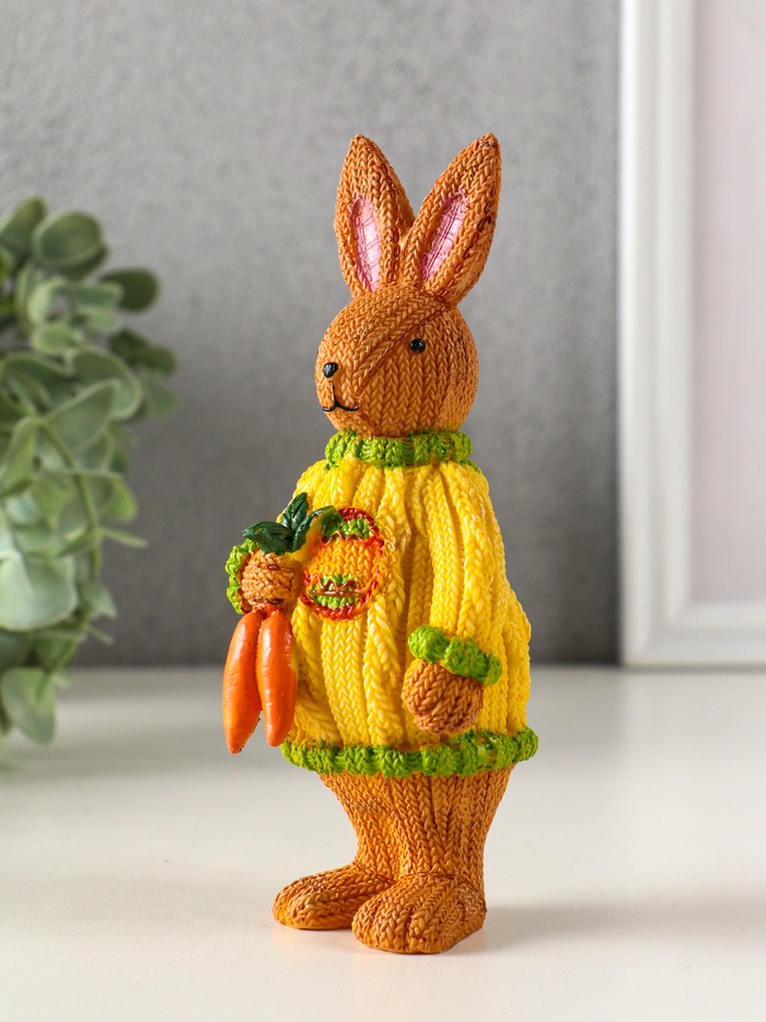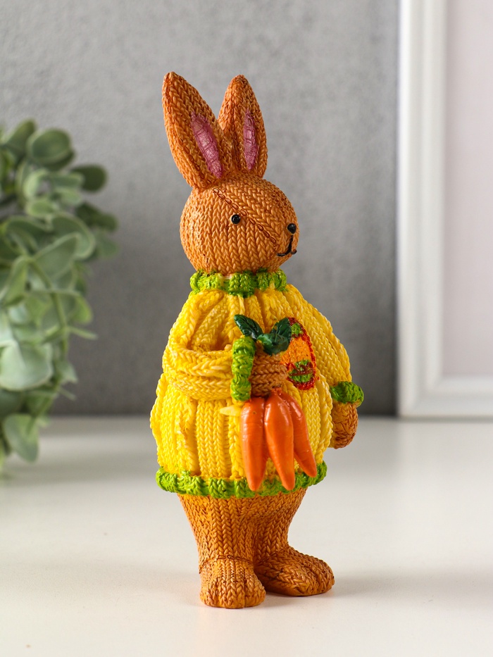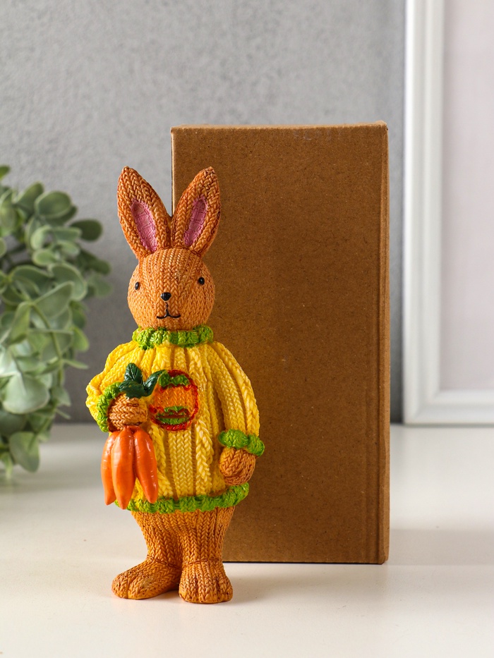 Фигурка полистоун «Заяц в вязанном свитере с охапкой моркови», 6.5×6.5×15.5 см — Характеристики