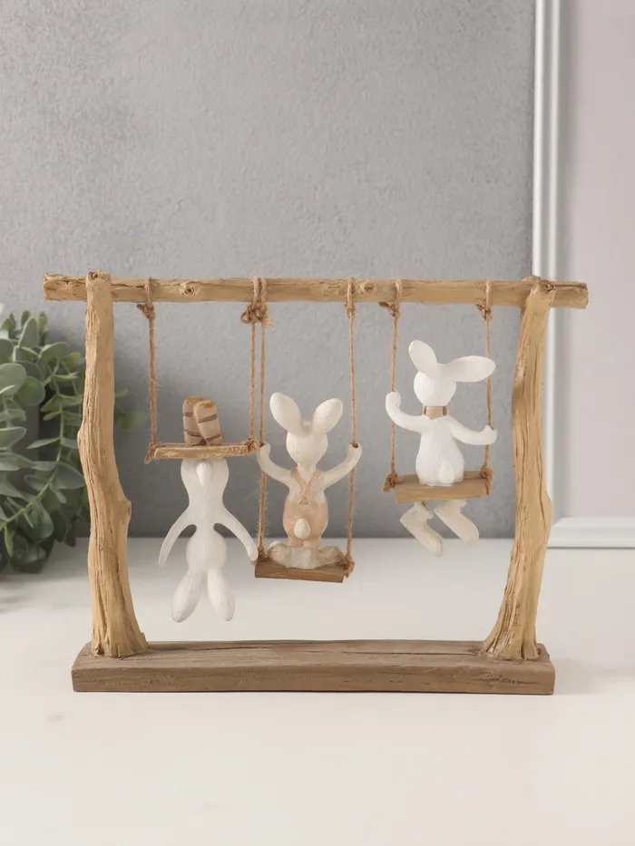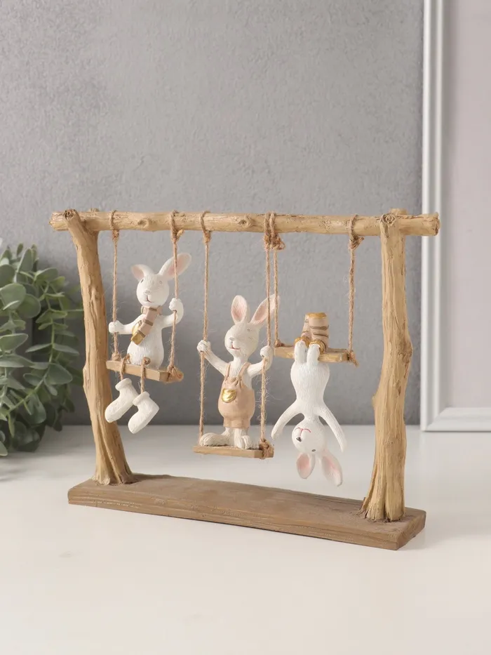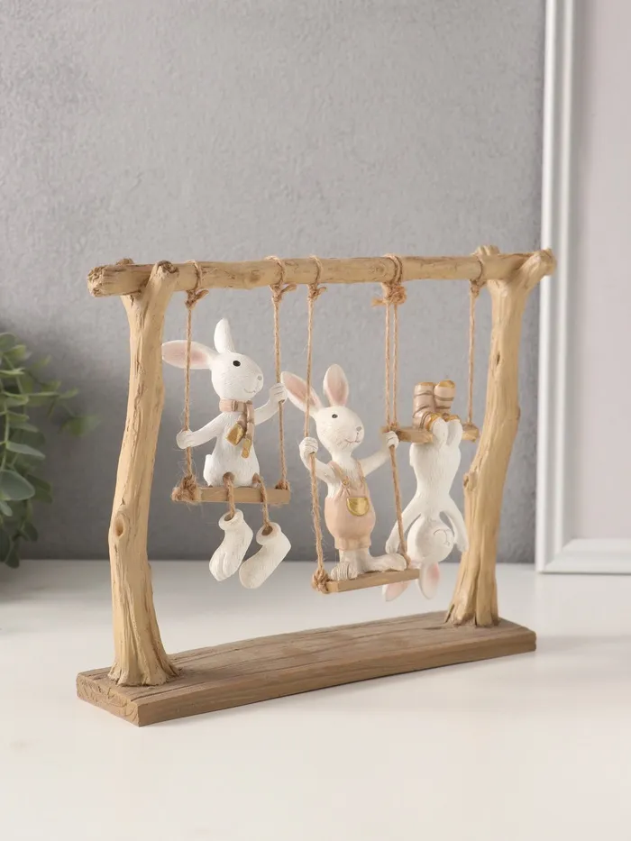 Фигурка полистоун «Зайчата: три друга на качелях», белый с золотом, 26×5.5×20 см — Характеристики