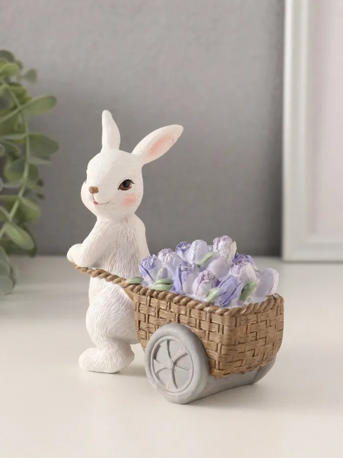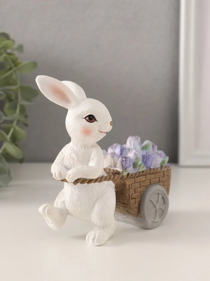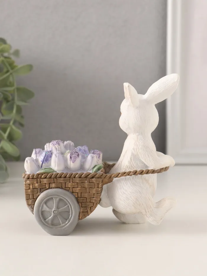 Фигурка полистоун «Зайчик с тележкой фиолетовых тюльпанов», 11.5×5.5×12 см — Характеристики