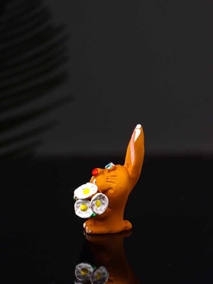 Несмотря на скромные размеры (5×3×3.2 см), фигурка притягивает взгляд тонкой проработкой деталей: от нежных лепестков в лапках до выразительной мордочки. Коричневый оттенок с натуральными переходами придаёт образу глубину и реалистичность.
