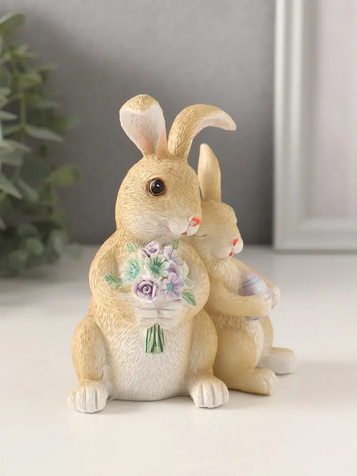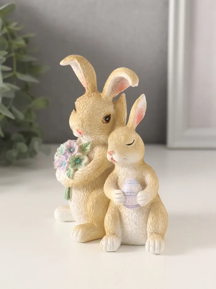 Фигурка полистоун «Зайчики с букетом незабудок и пасхальным яичком», 10.5×7×12 см — Характеристики