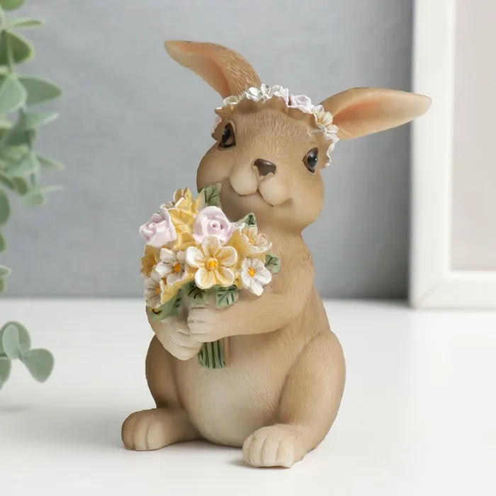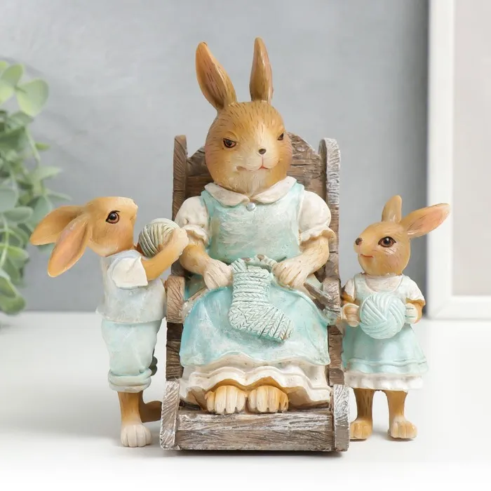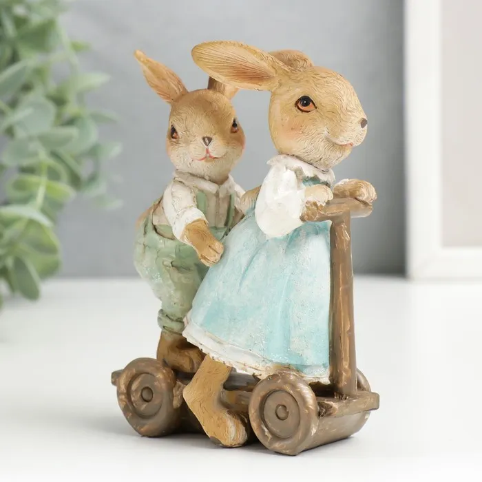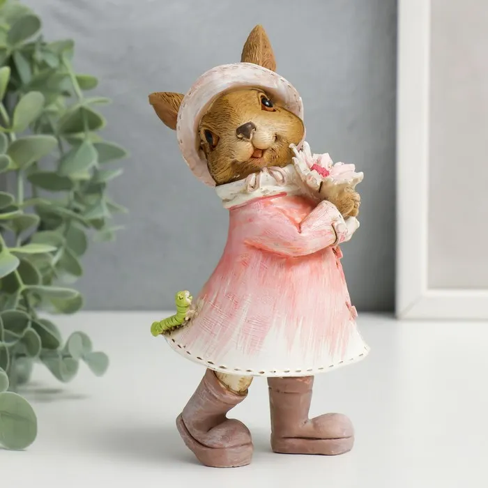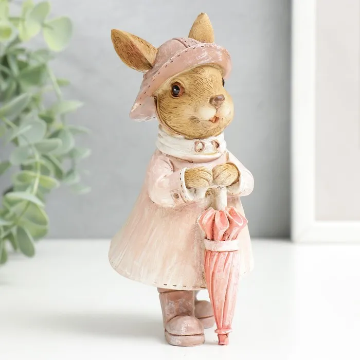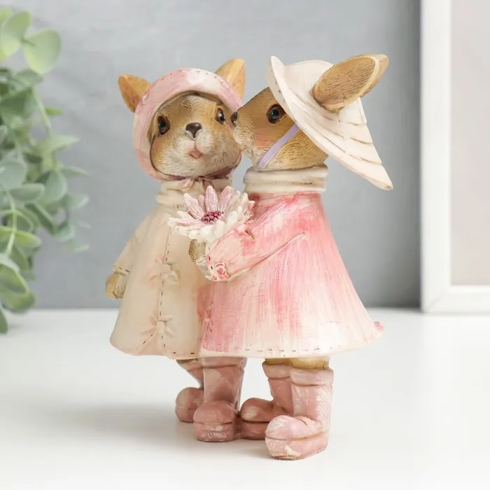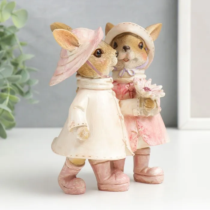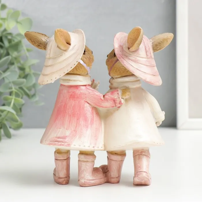 Фигурка полистоун «Зайчики в шляпках и дождевиках, с цветком», 13.5×8×13 см — Характеристики