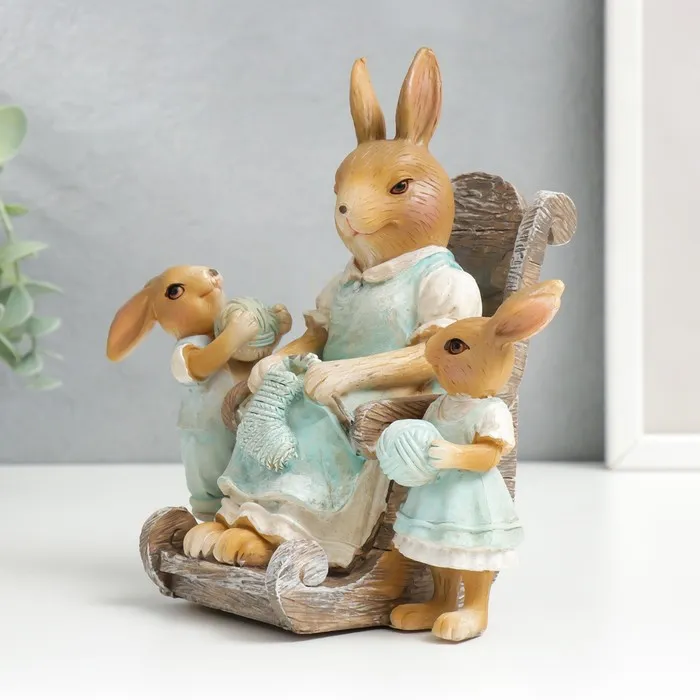 Эта фигурка из полистоуна, изображающая зайку-бабулю с внучатами, станет трогательным украшением вашего интерьера, добавляя ему нотку тепла и семейной гармонии. Её бежевый оттенок и детализированная проработка фигур создают атмосферу уюта и доброты, а высота в 16,5 см делает её заметным акцентом на полке, столе или в праздничной композиции.