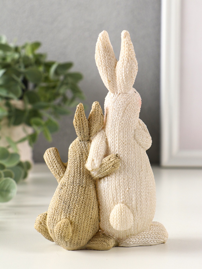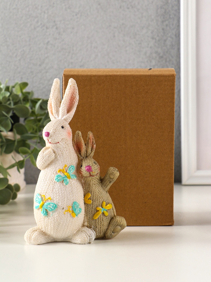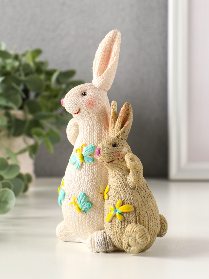 Фигурка полистоун «Зайка с зайчонком вязанные с бабочками, цветами», 5×9.8×15 см — Характеристики