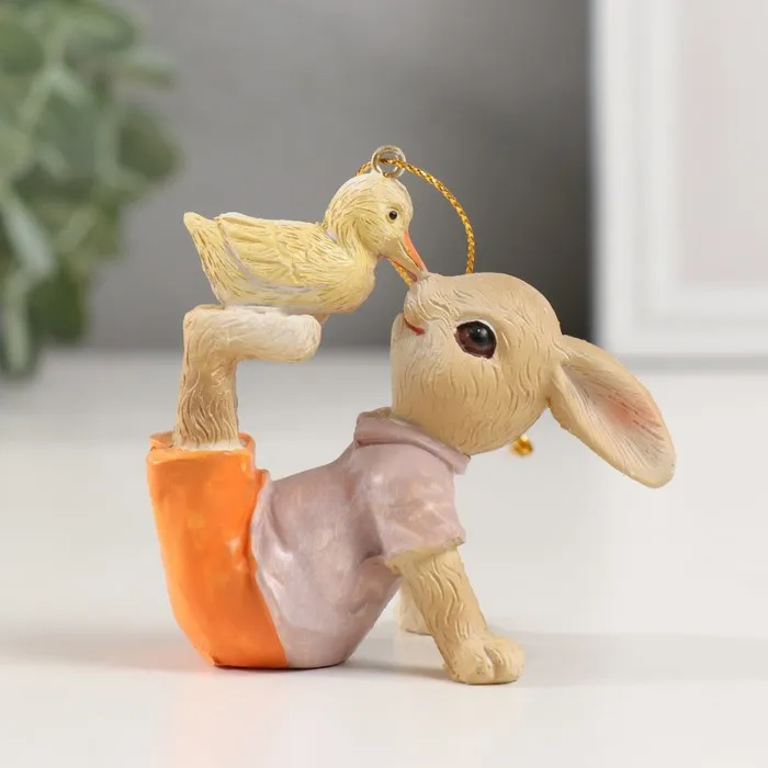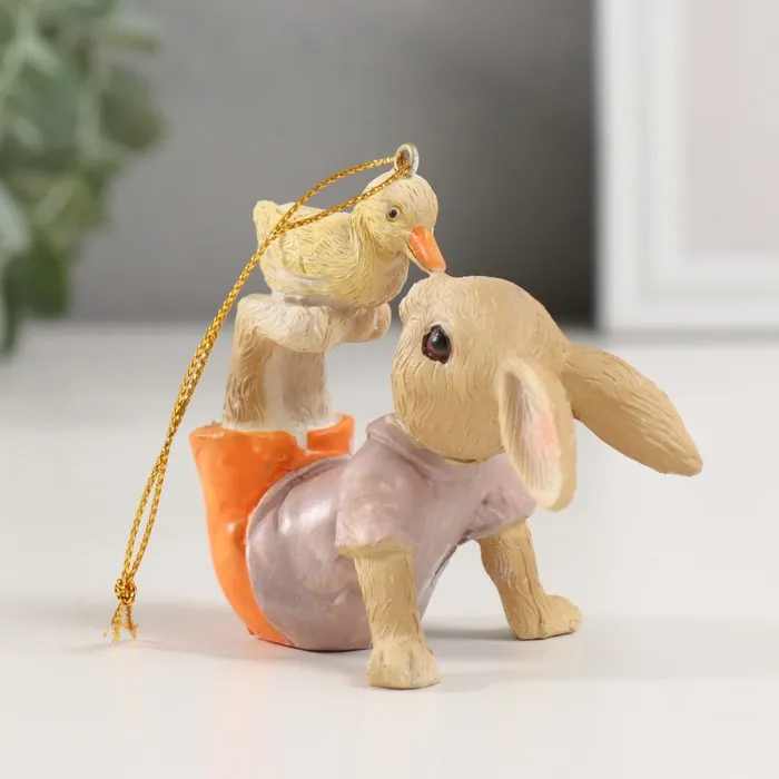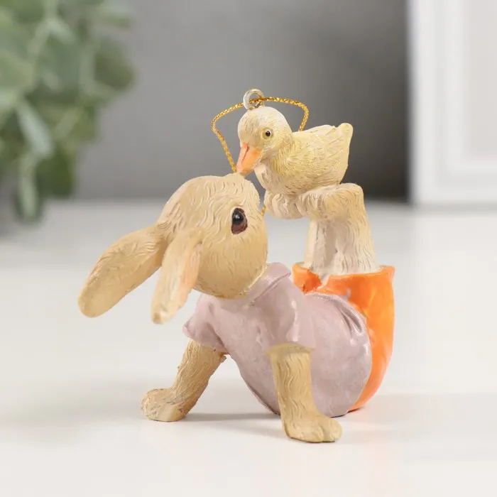 Представляем очаровательную фигурку, которая наполнит ваш дом атмосферой тепла и весеннего настроения. Этот зайка с жёлтым птенчиком станет символом заботы и гармонии, создавая особую атмосферу уюта. Его компактные размеры — 7.5×5×7 см — делают его универсальным решением для украшения полок, столов или даже в качестве подвесного элемента декора.