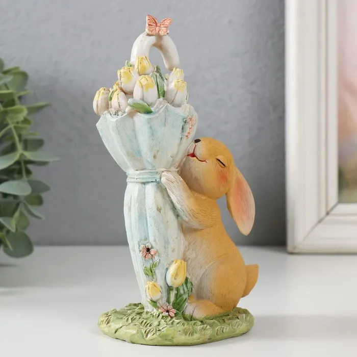 Фигурка «Зайка с тюльпанами» из полистоуна станет очаровательным дополнением к вашему интерьеру. Эта милая статуэтка, выполненная в разноцветной гамме, привнесёт в ваш дом атмосферу уюта и весеннего настроения. Высота фигурки составляет 15,5 см, что делает её заметной, но при этом компактной.