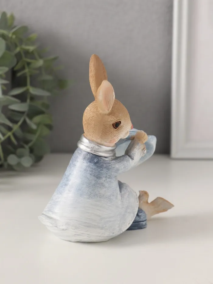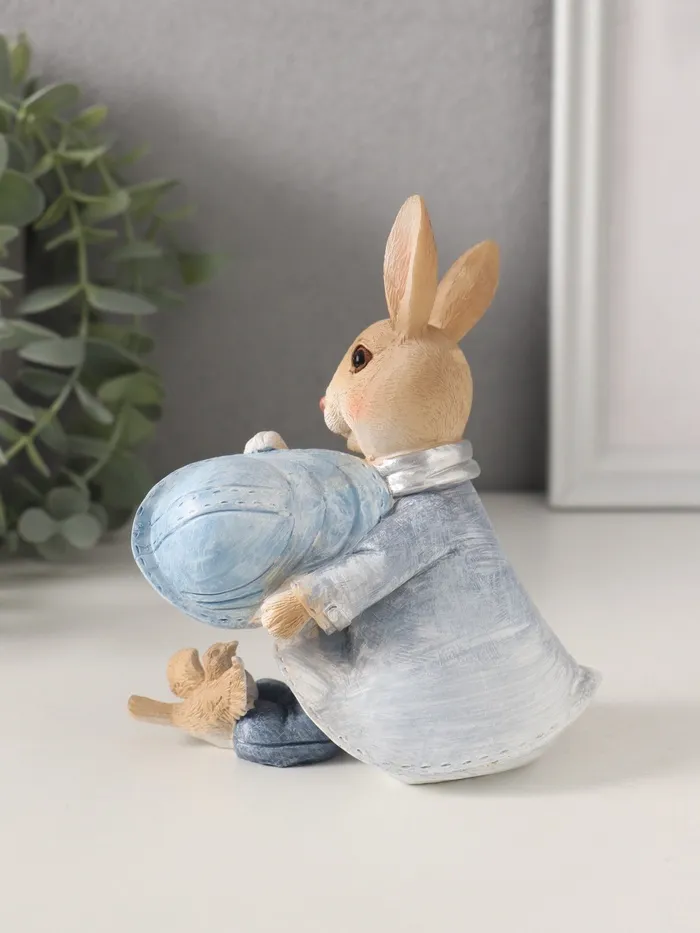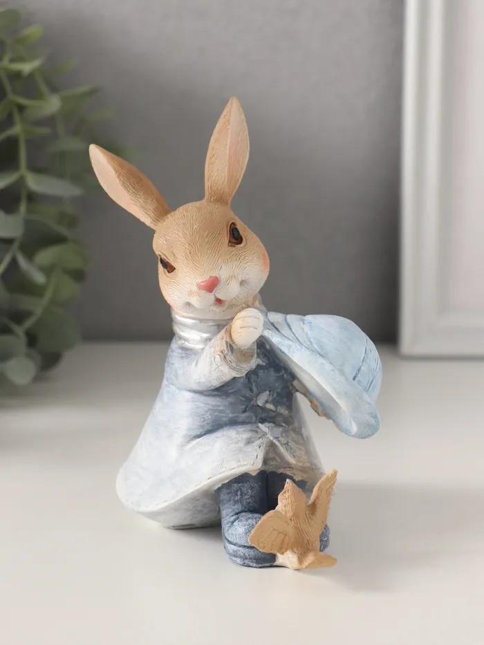 Фигурка полистоун «Зайка в шляпке и дождевике: с птичкой», синий, 11×7×13 см — Характеристики