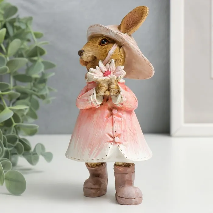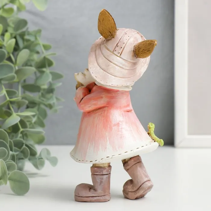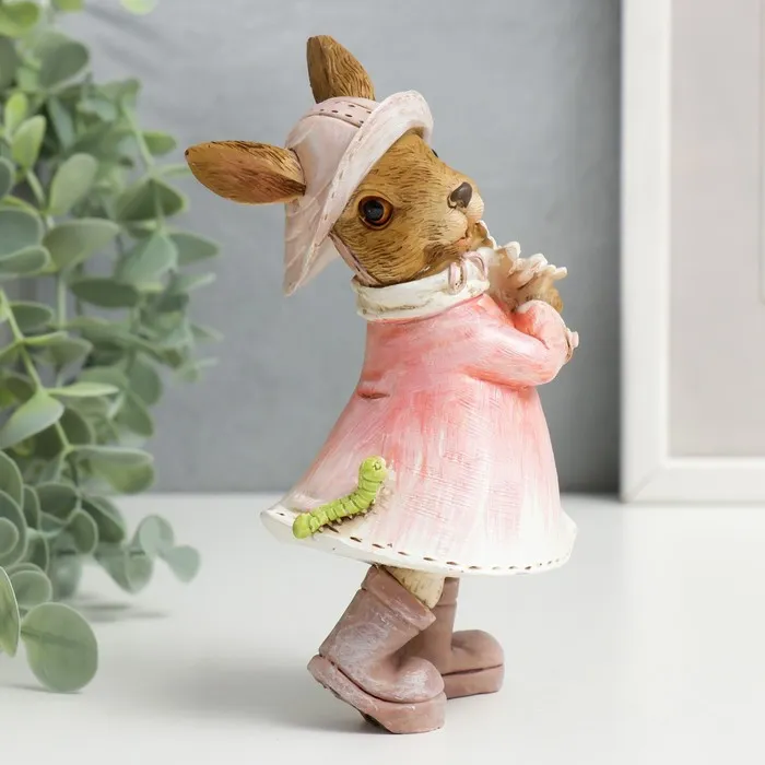 Фигурка полистоун «Зайка в шляпке и дождевике с цветком и гусеницей», 14.5×6.5×8 см — Характеристики