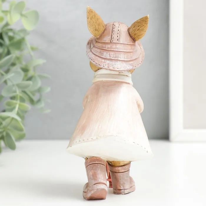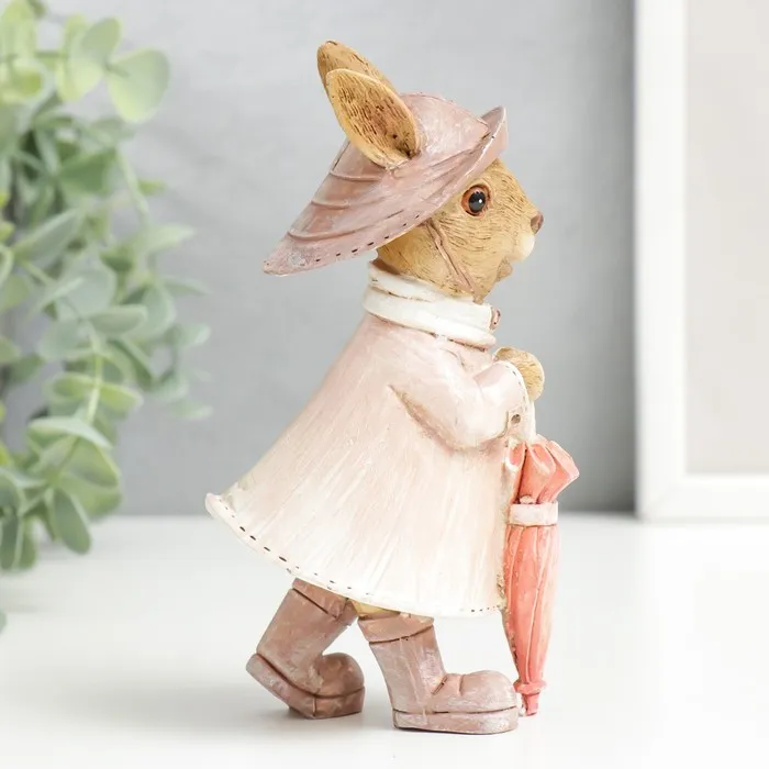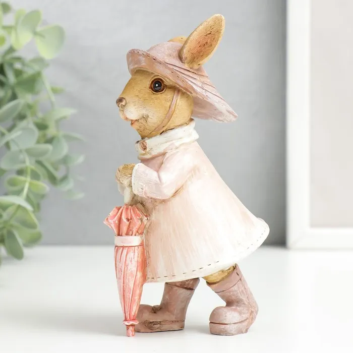 Эта фигурка из полистоуна, изображающая зайку в шляпке и дождевике с зонтом, станет очаровательным украшением вашего интерьера, добавляя ему нотку уюта и игривого настроения. Её разноцветный дизайн и детализированная проработка фигуры подчеркивают мастерство исполнения, а высота в 14,5 см делает её заметным акцентом на полке, столе или в детской комнате.