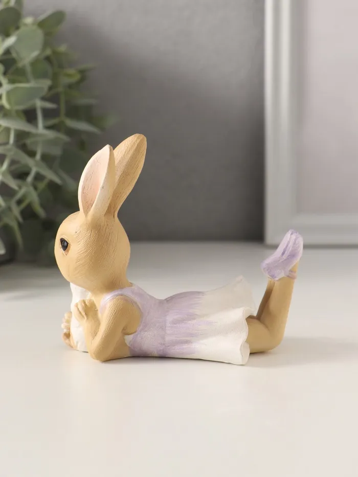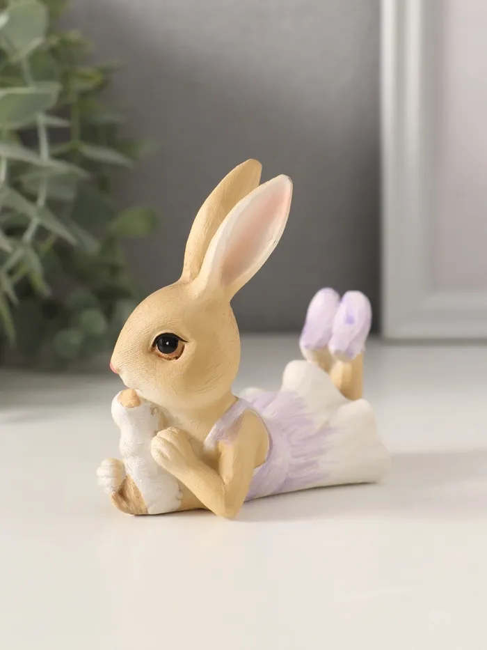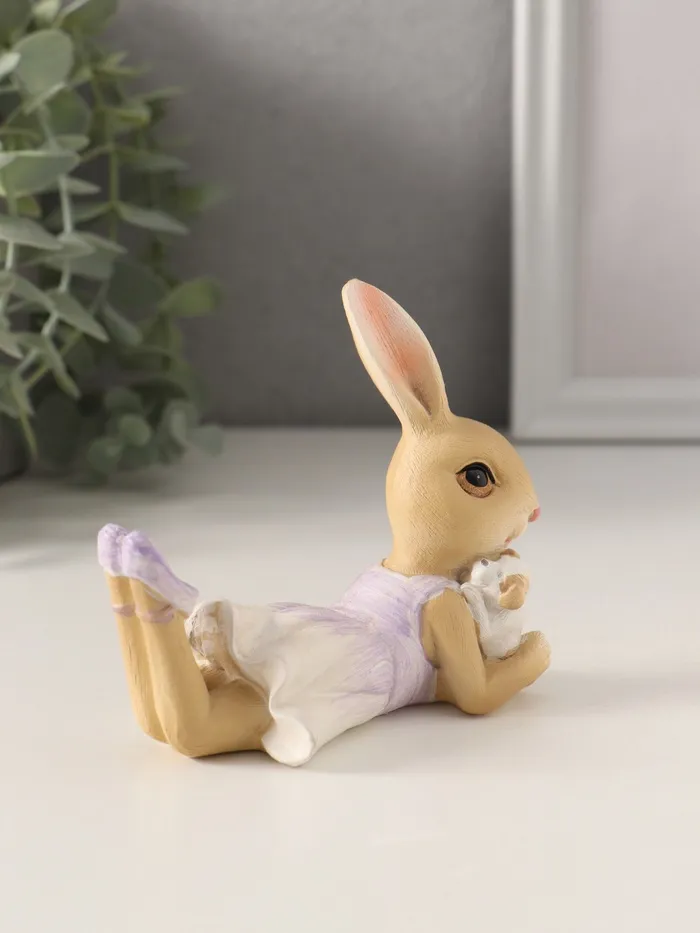 Фигурка полистоун «Зайка в сиреневом сарафане с щеночком», 10×5.5×9 см — Характеристики