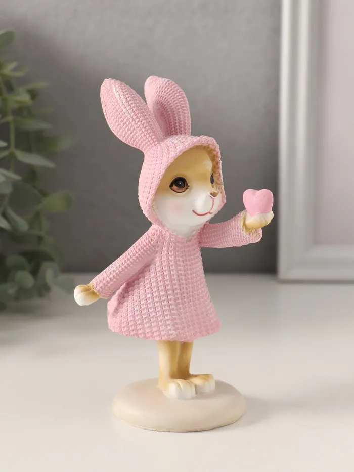 Фигурка полистоун «Зайка в вязаном розовом платьице, сердечко в лапке», 7.5×5.5×13.5 см — Характеристики