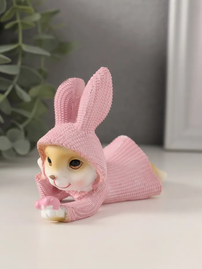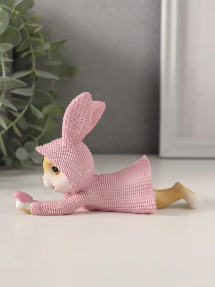 Фигурка полистоун «Зайка в вязаном розовом платьице, смотрит на сердечко», 12.5×5.5×8 см — Характеристики