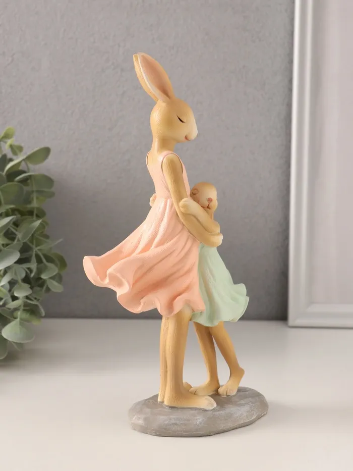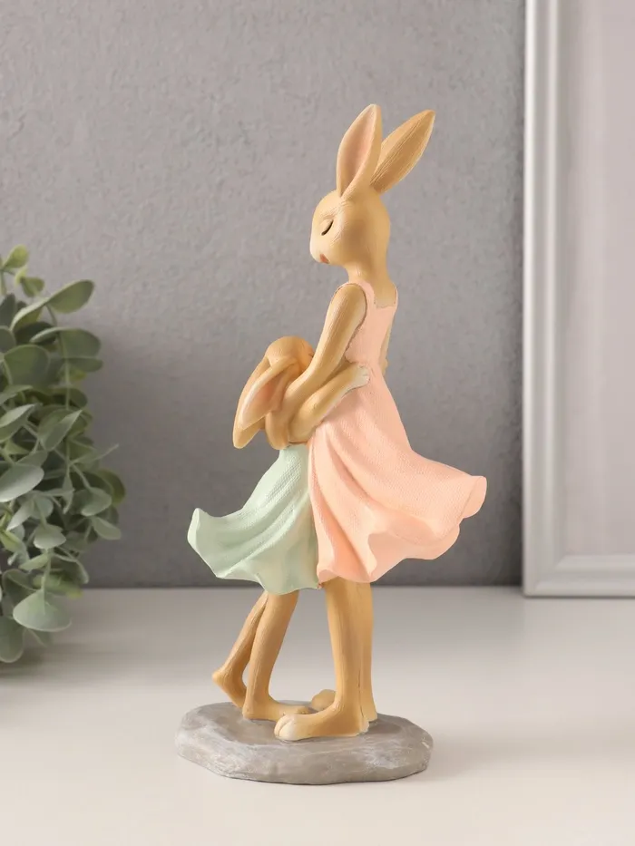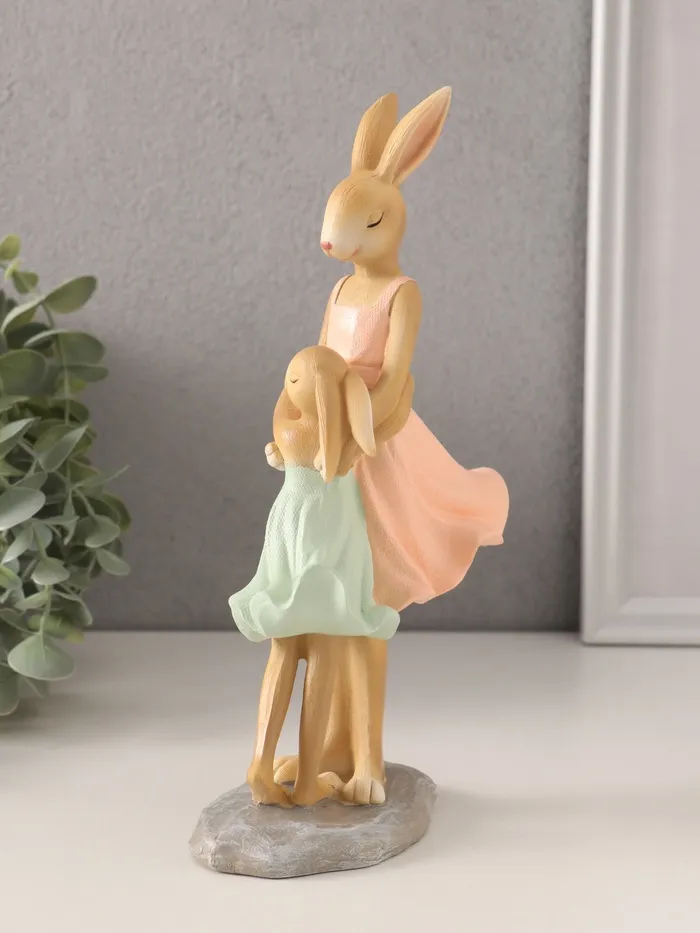 Выбор этой фигурки — это возможность добавить в ваш дом частичку душевного тепла и уюта. Она не только украсит пространство, но и станет источником приятных эмоций, напоминая о важности любви и заботы. Пусть эта трогательная композиция зайцев станет символом вашего семейного счастья и радости, даря вам и вашим близким тепло каждый день.