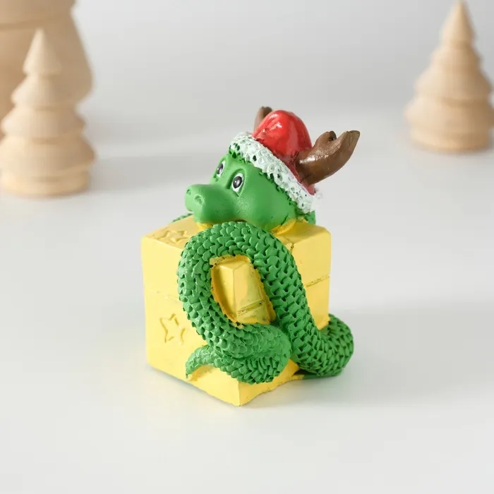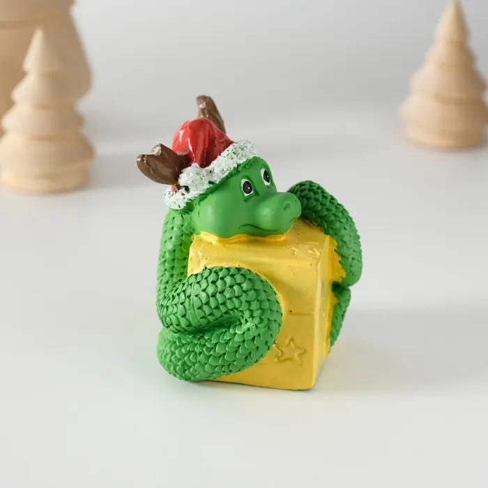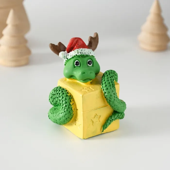 Фигурка полистоун «Змей с подарком, в новогоднем колпаке с рожками», 5×5.8 см — Характеристики