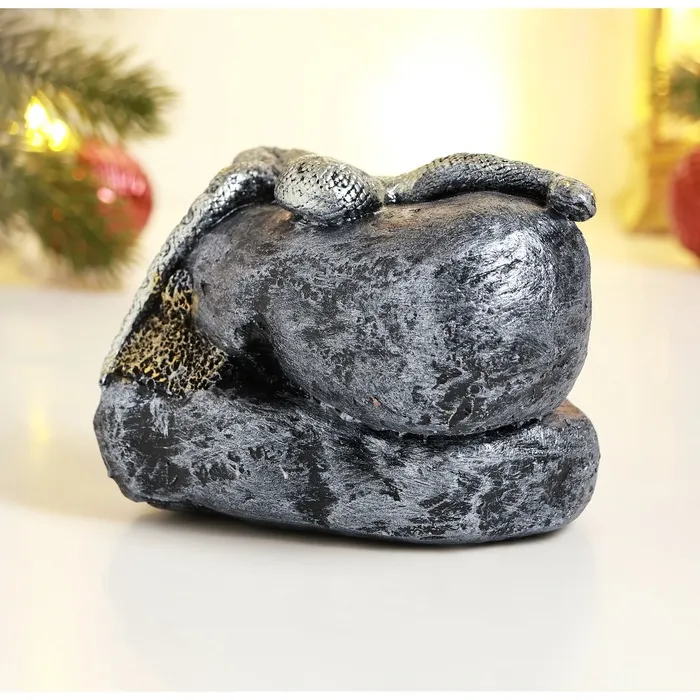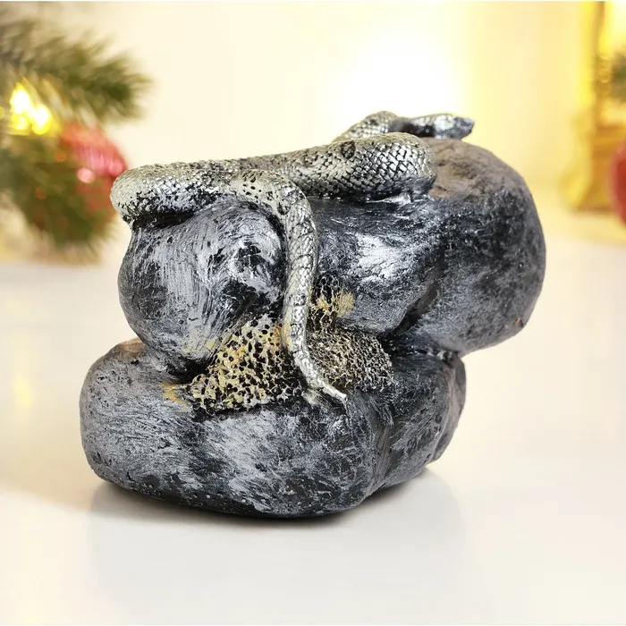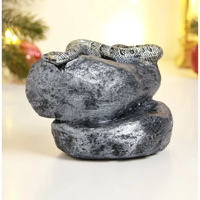 Фигурка полистоун «Змея на камне», серебро, 8×11.5 см — Характеристики