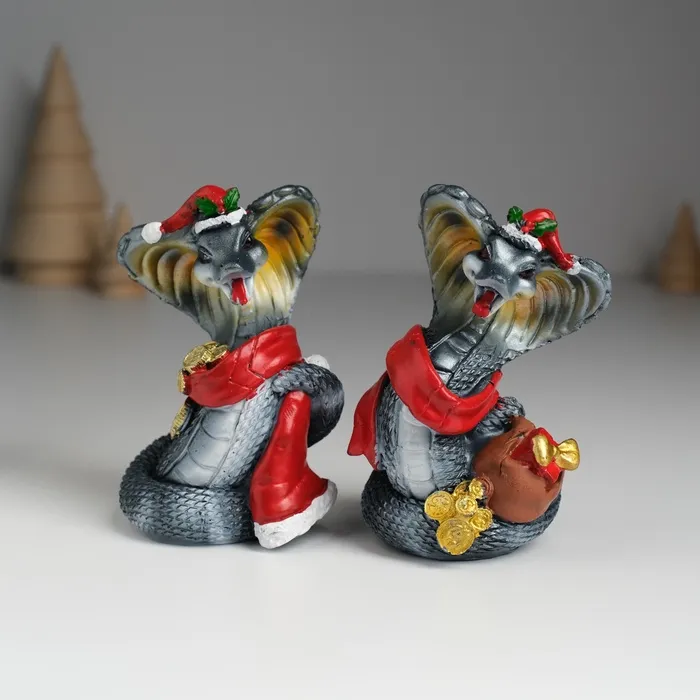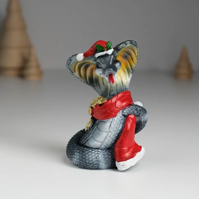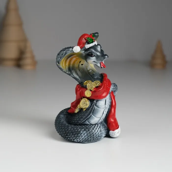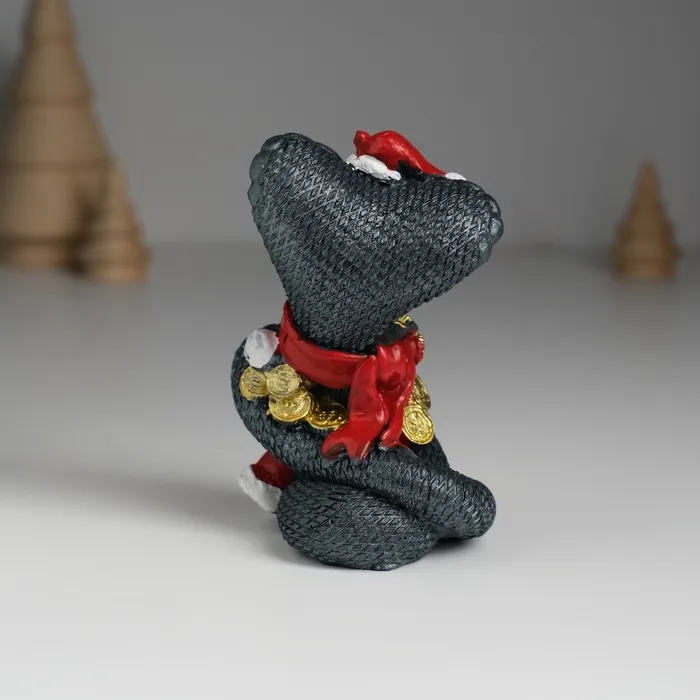 Фигурка полистоун «Змея тёмная в красной шапке и шарфике с монетками», 6.2×4.7×9 см, МИКС — Характеристики