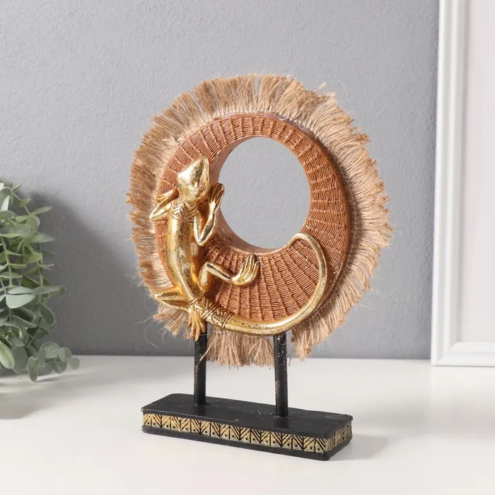 Фигурка полистоун «Золотая ящерица на плетёном кольце», 5×13.2×21.5 см — Характеристики