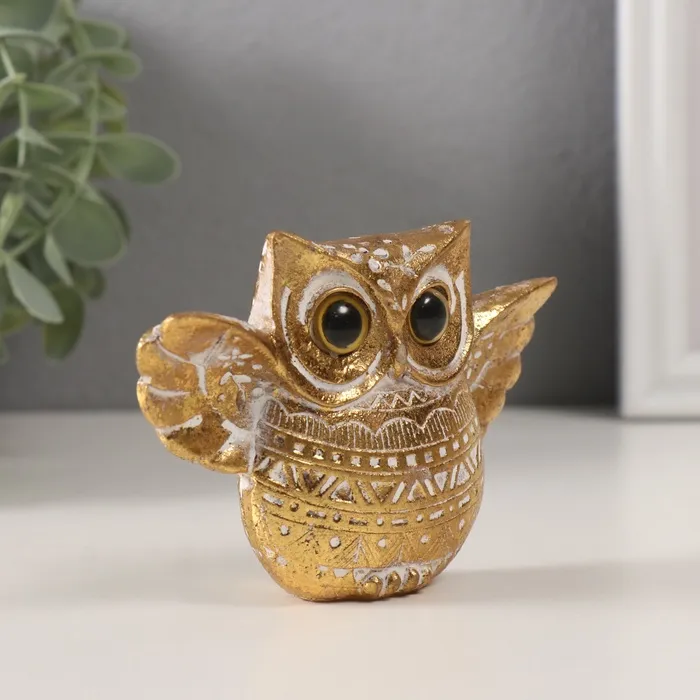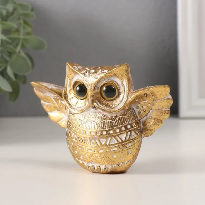 Фигурка полистоун «Золотой филин с расправленными крыльями», узоры, 11.5×3.2×7.8 см 10323 — Характеристики
