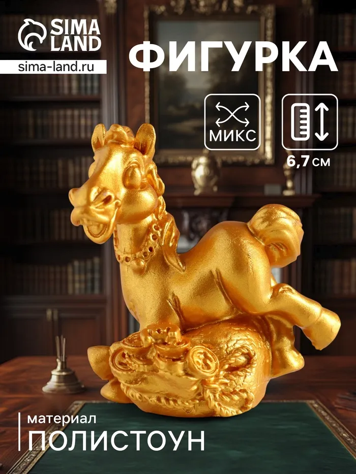 Фигурка полистоун «Золотой конь с богатством», 5×2.5×6.7 см, МИКС — Характеристики