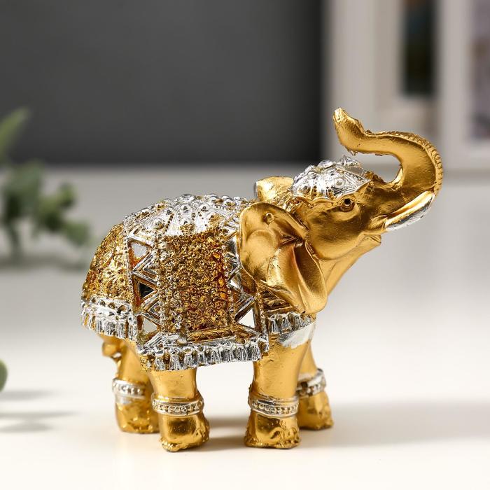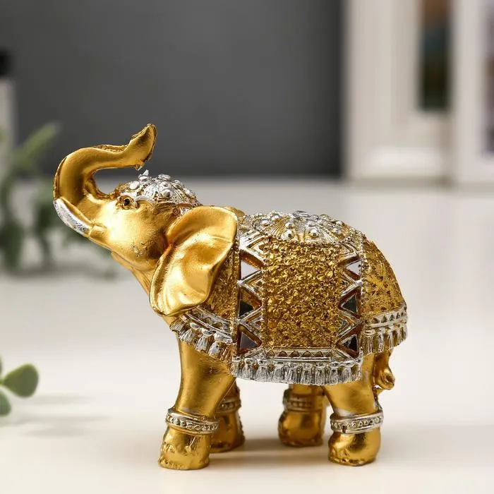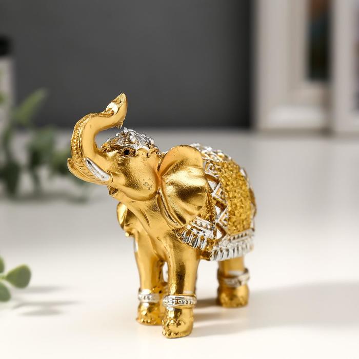 Фигурка полистоун «Золотой слон в зеркальной попоне», 8.5×9.2×3.7 см, МИКС — Характеристики