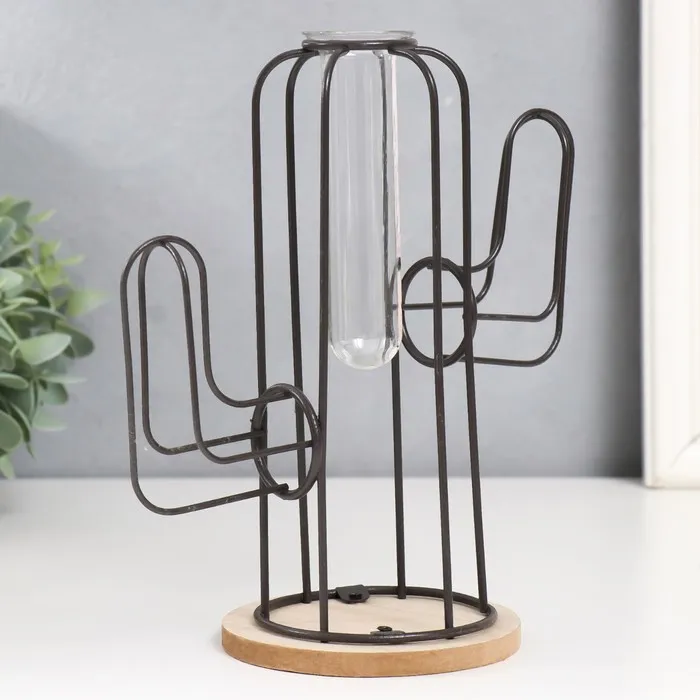 Фигурка с колбой (вазоном) «Кактус», чёрный, 20×12×22.5 см — Характеристики