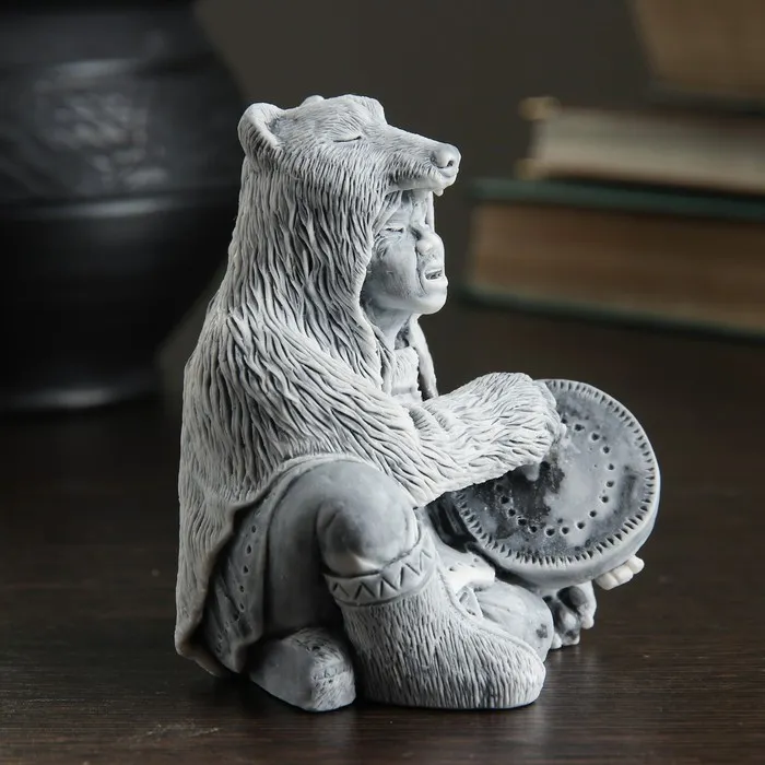 Фигурка «Шаман в шкуре медведя с бубном», 8.5 см