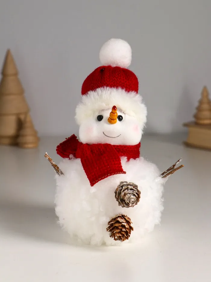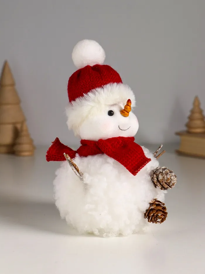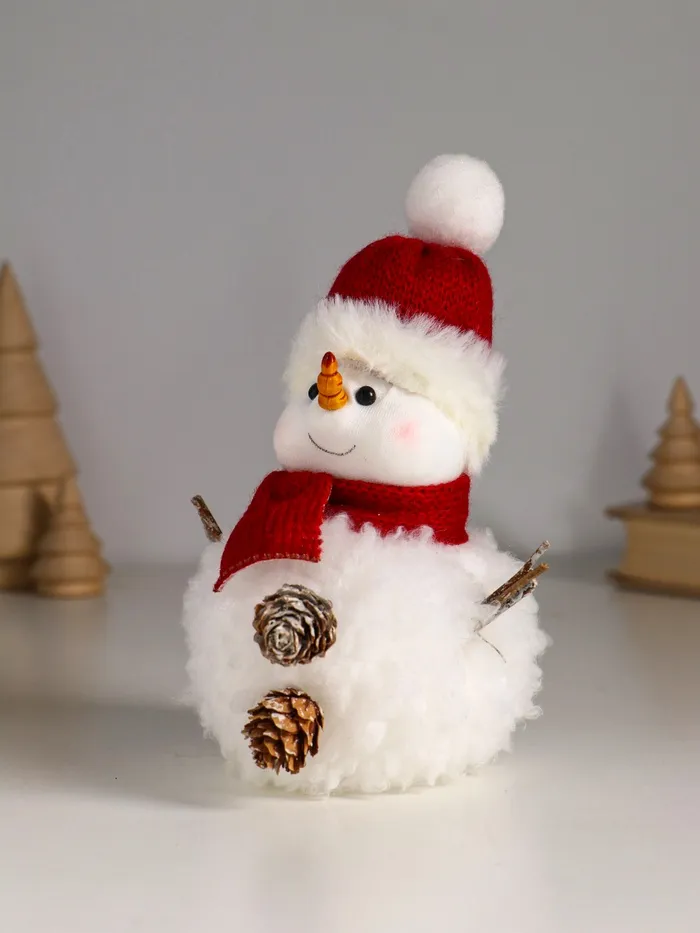 Фигурка «Снеговичок белый, в шапке с мехом и красном шарфе», 9×11×16 см — Характеристики