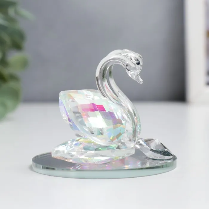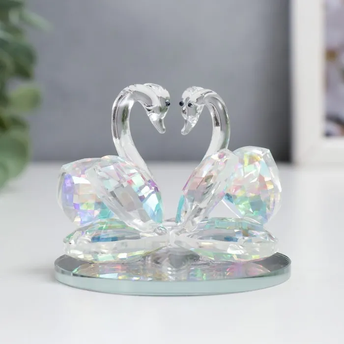 Представляем изысканное воплощение грации и вечной любви — прозрачную стеклянную композицию с лебедями, украшенную эффектом голографии и мерцающим бриллиантом. Эта миниатюрная фигурка размером 6.5×6×5 см создаёт ощущение воздушности и чистоты, становясь символом доверия, верности и гармонии. Благодаря своей компактности и универсальному дизайну, она легко впишется в любой интерьер или станет идеальным подарком для особого случая.