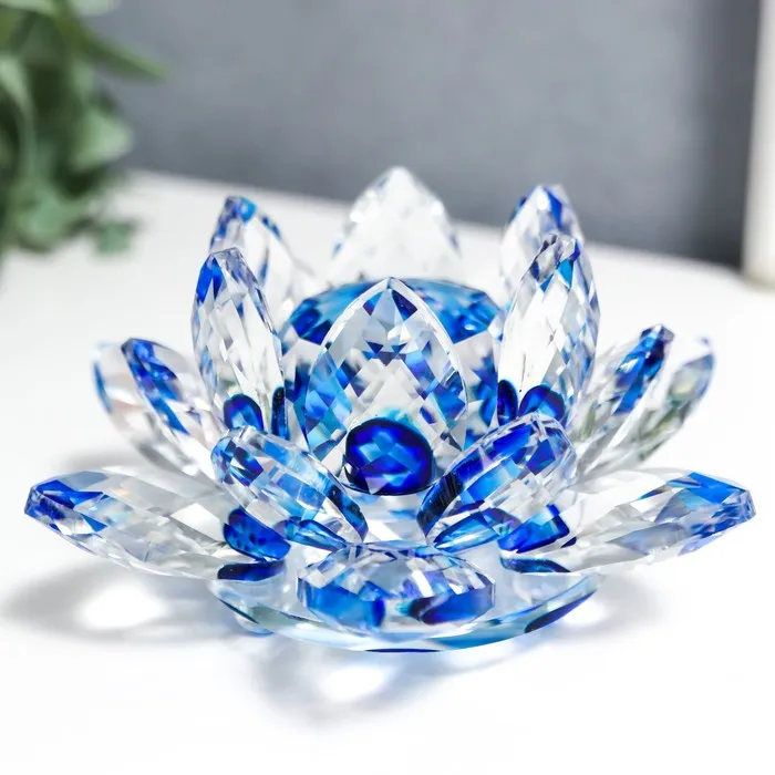 Фигурка стекло «Лотос кристалл трехъярусный голубая радуга», d=11 см станет замечательным подарком представительнице прекрасного пола, такой же утонченной и изящной, как этот необычный цветок.