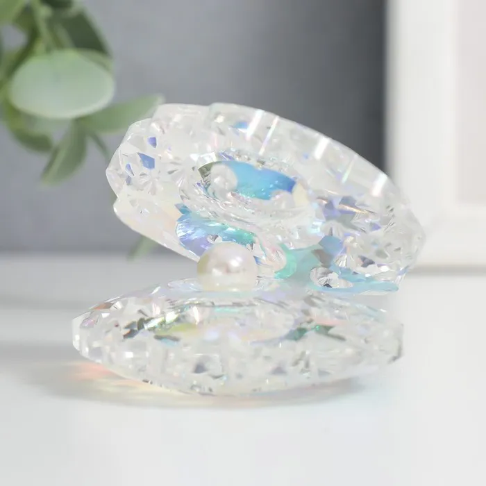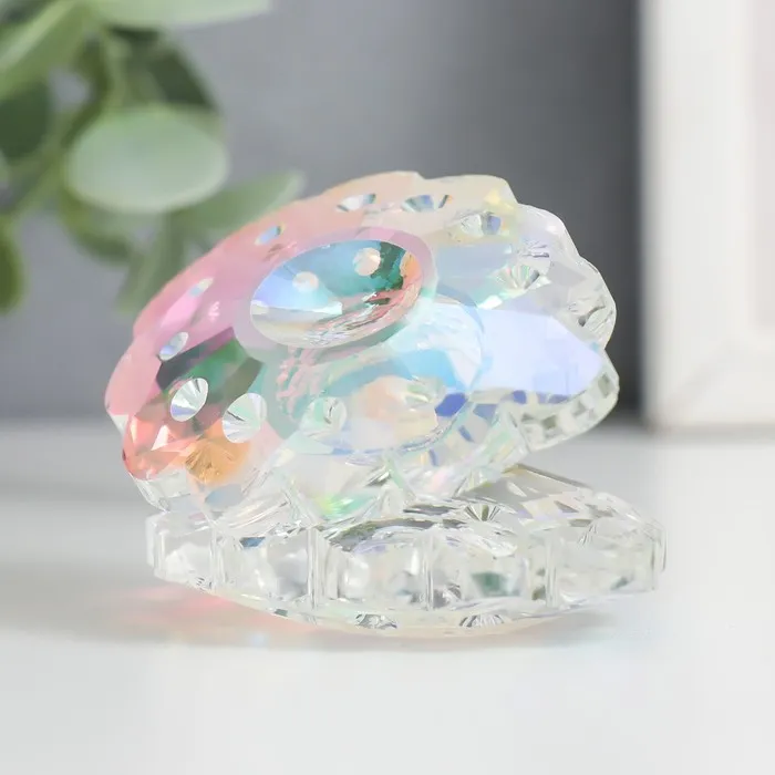Выполненная из прозрачного стекла с перламутровым отливом, фигурка размером 6,5×5×5 см удивительно точно передает природную форму морского моллюска. Игра света на гранях создает эффект настоящей раковины, только что извлеченной из морских глубин.