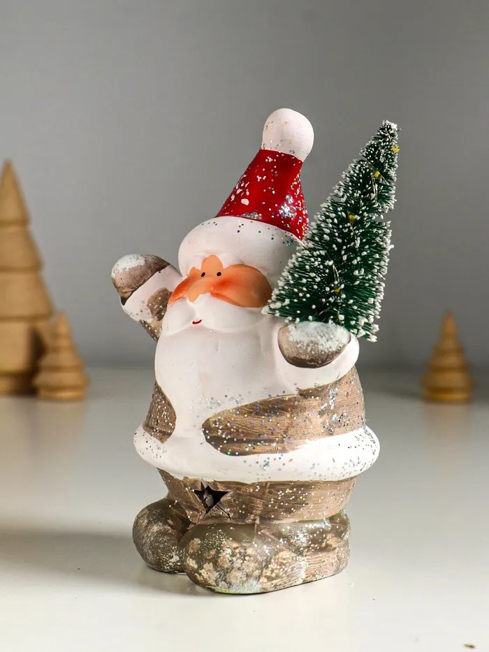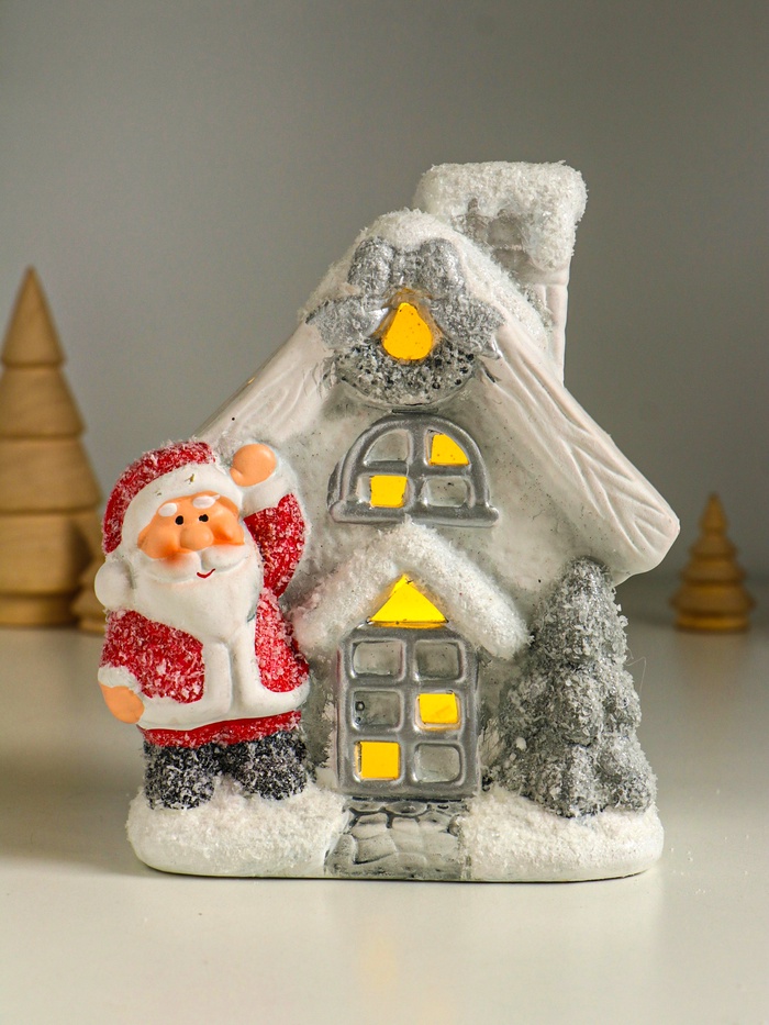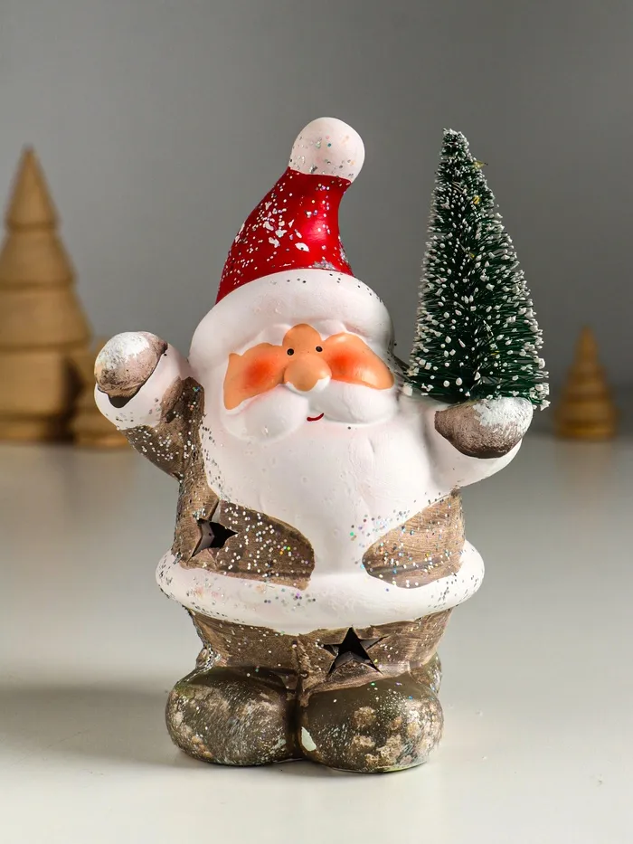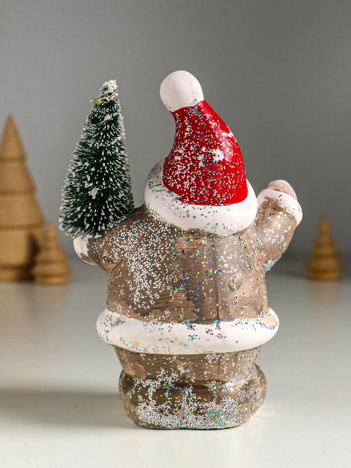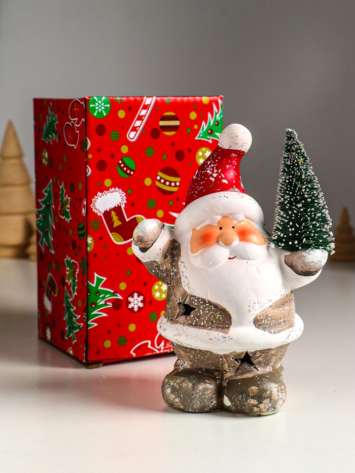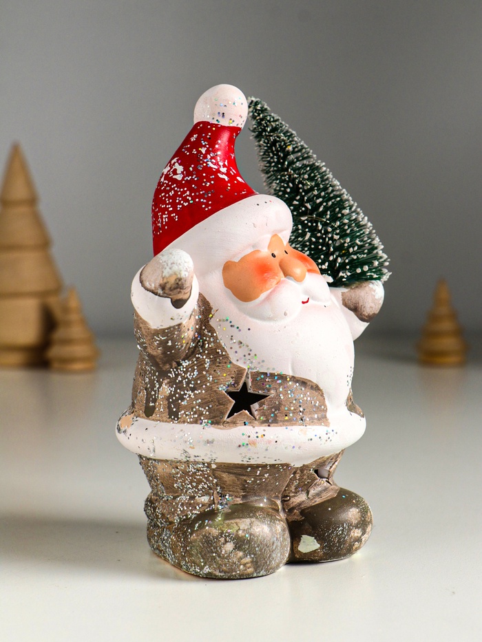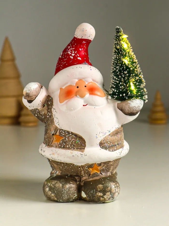Фигурка светящаяся «Дед Мороз в серебристой шубке с ёлочкой», керамика, 9.5×7.5×14.5 см — Характеристики