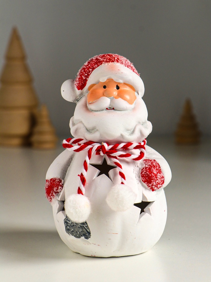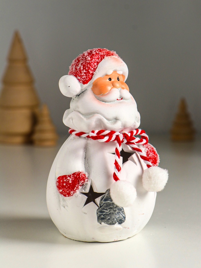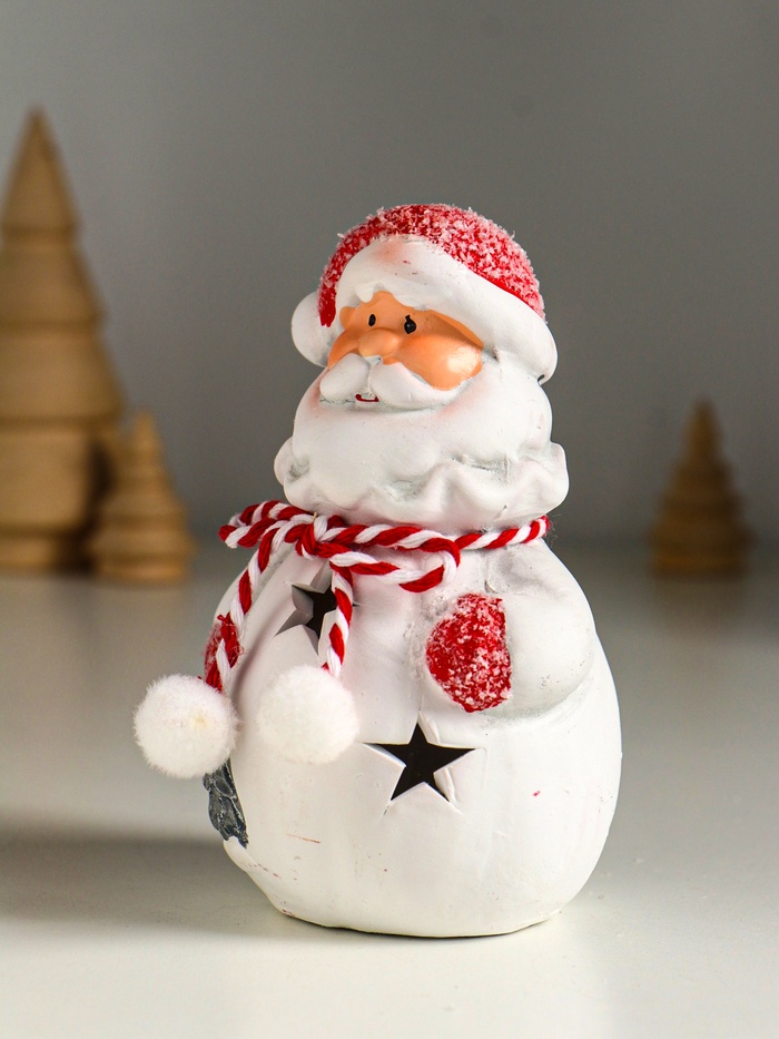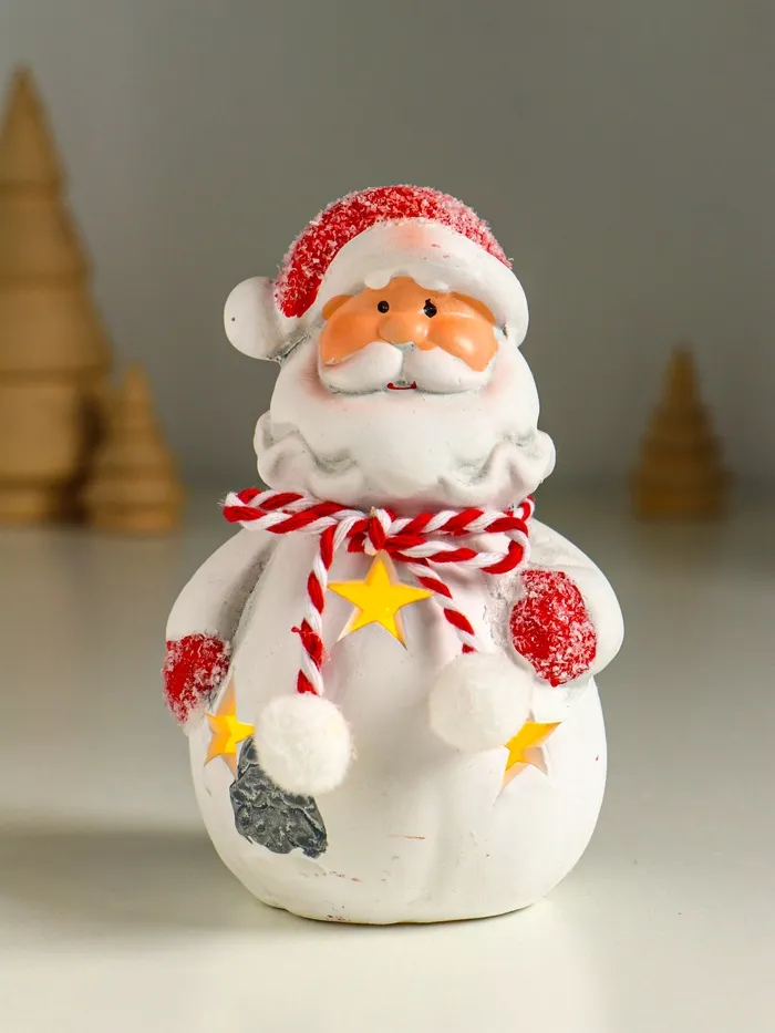 Фигурка светящаяся «Дед Мороз в шубке с помпонами», керамика, 7.5×6.5×12.5 см — Характеристики