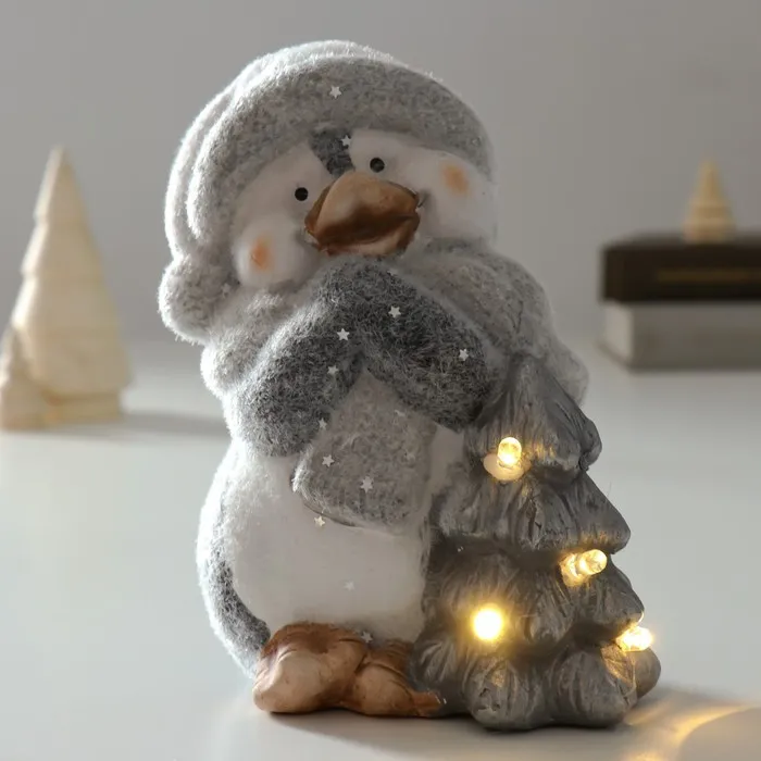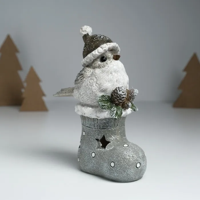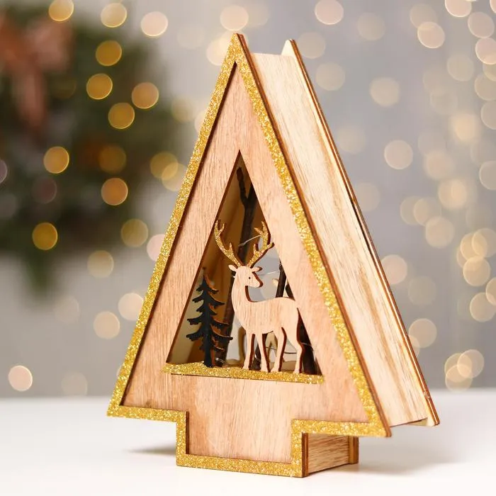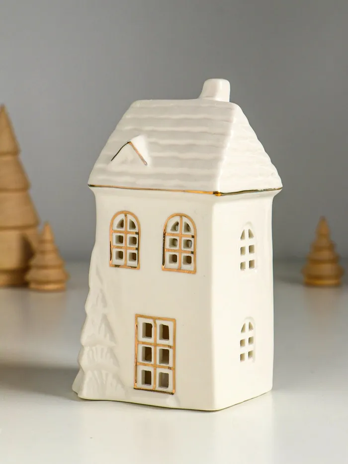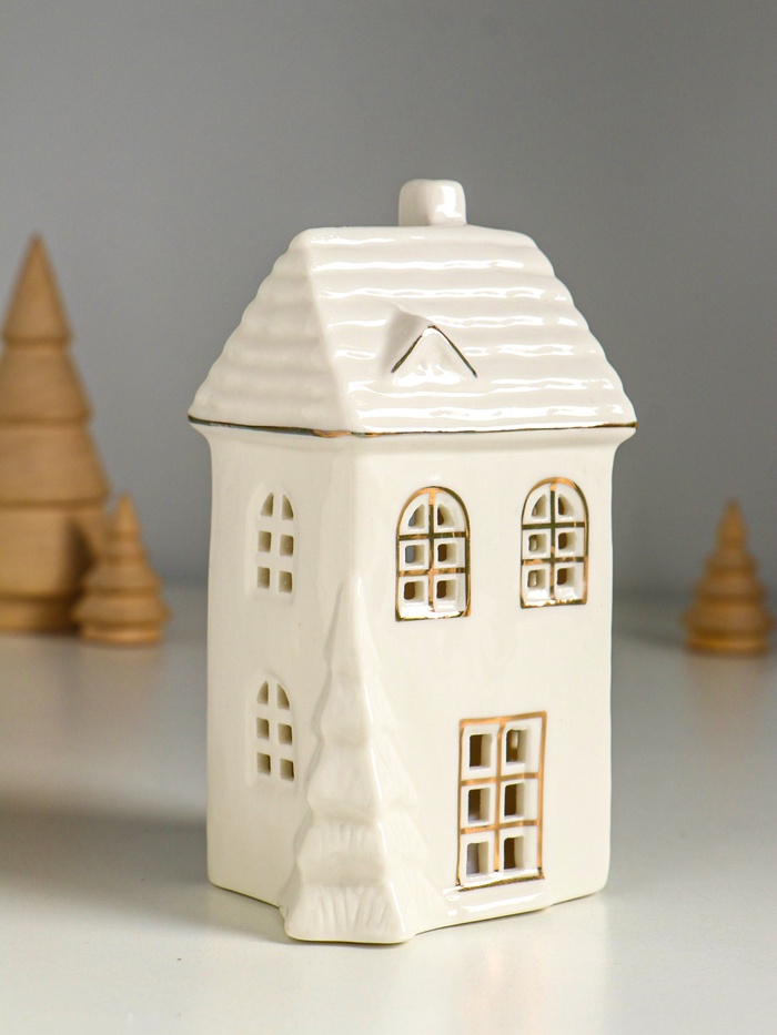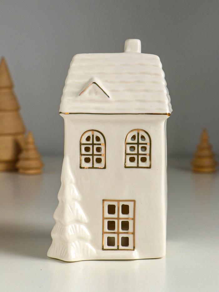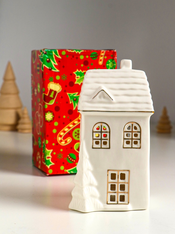 Фигурка светящаяся «Домик с ёлочкой», керамика, белый с золотом, 7.5×6.5×14 см — Характеристики
