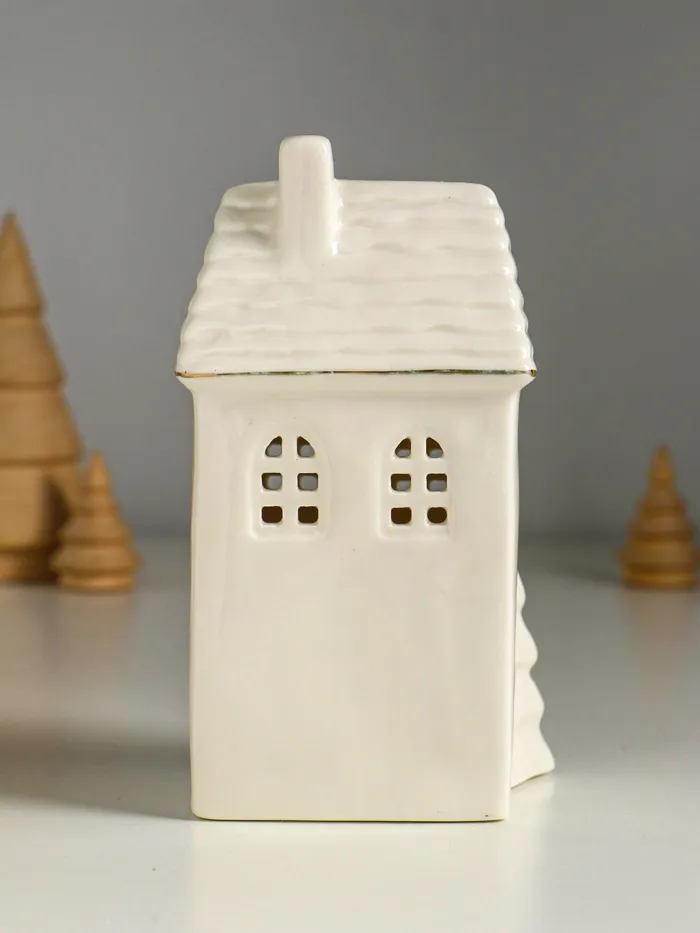 Фигурка светящаяся «Домик с ёлочкой», керамика, белый с золотом, 7.5×6.5×14 см