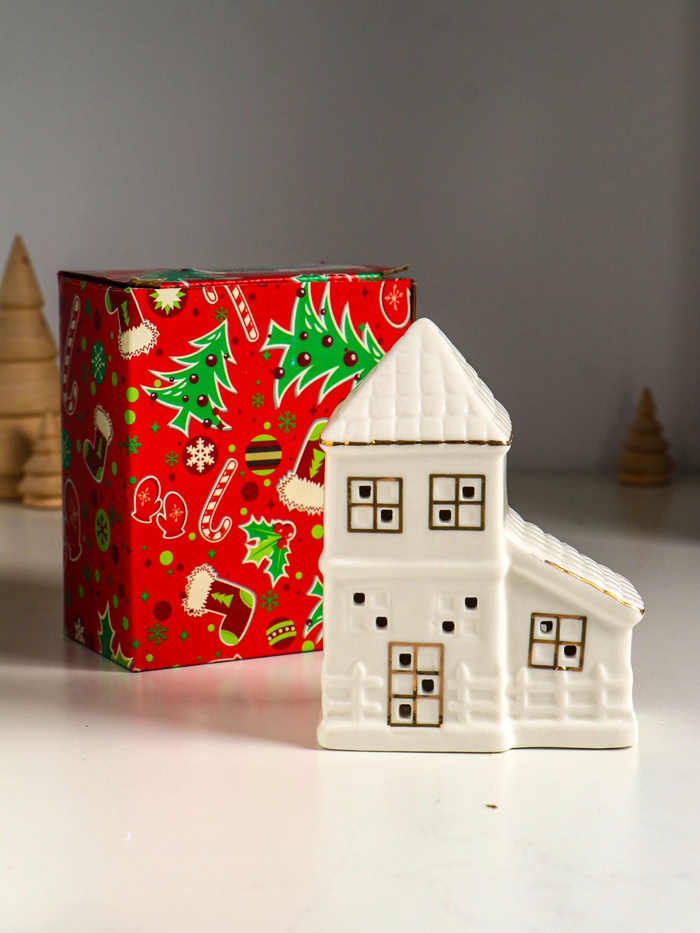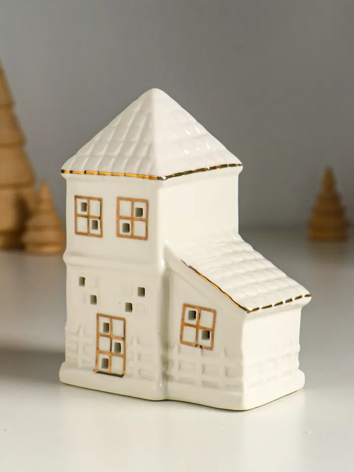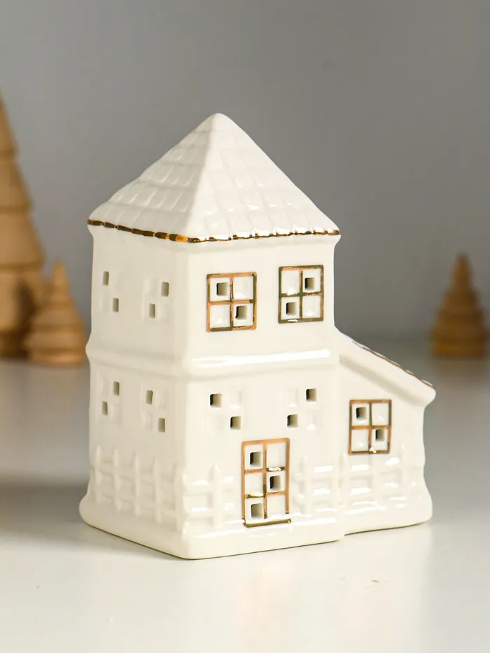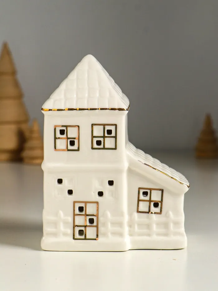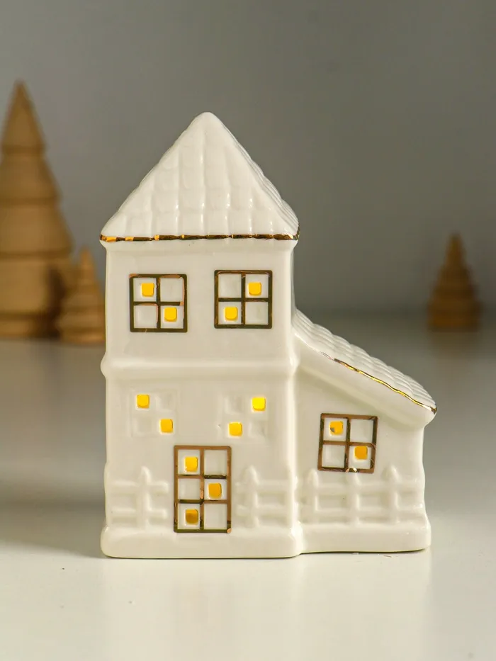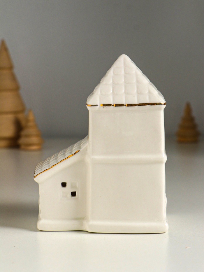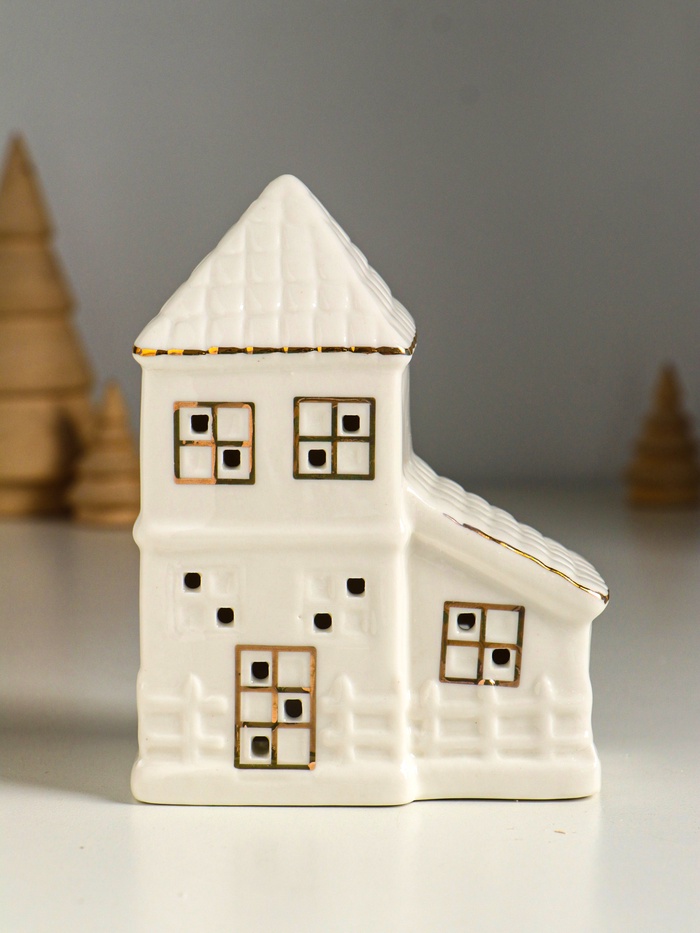 Фигурка светящаяся «Домик с верандой», керамика, белый с золотом, 9.5×6×12.5 см — Характеристики