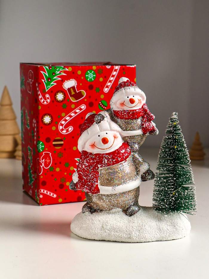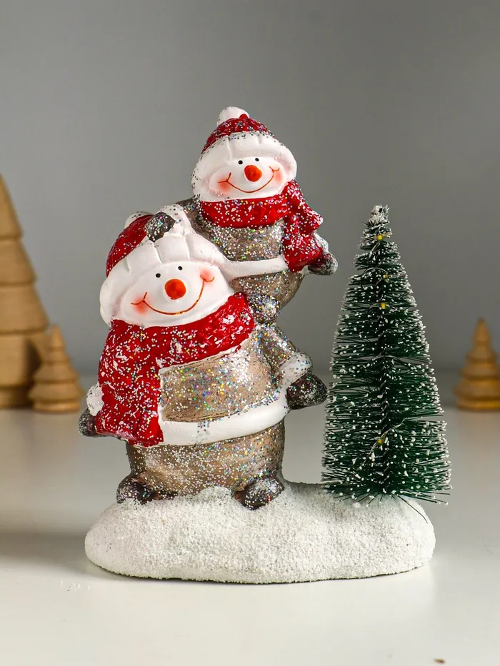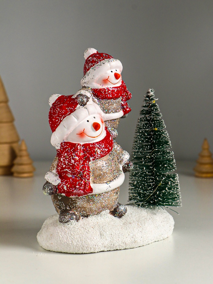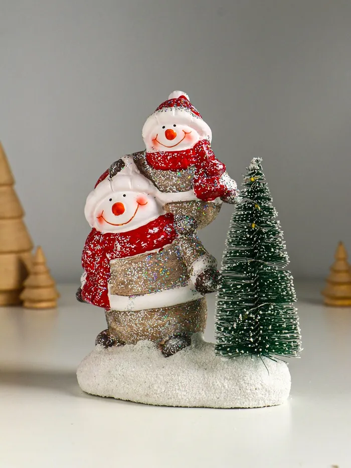 Фигурка светящаяся «Два снеговичка у ёлочки», керамика, 12×7.5×15.5 см — Характеристики