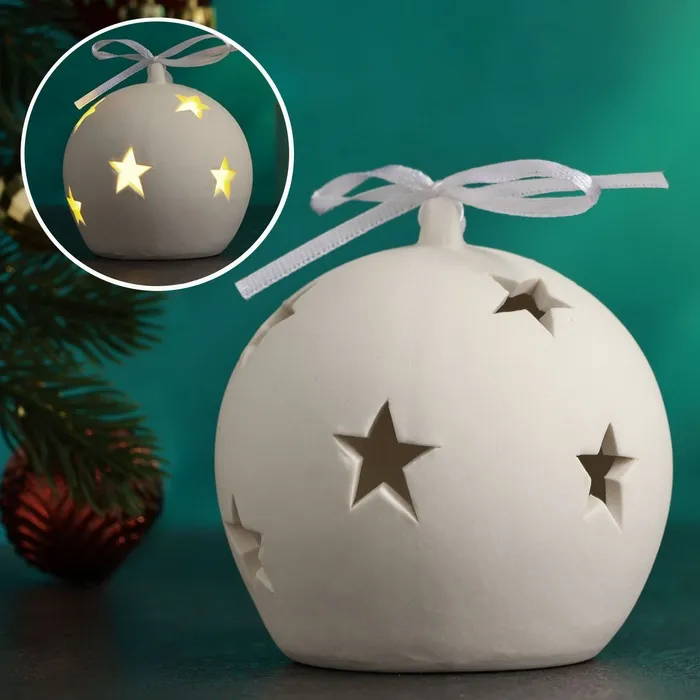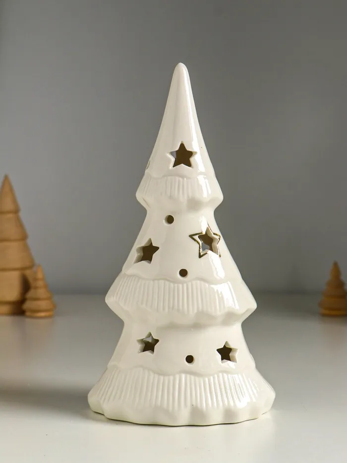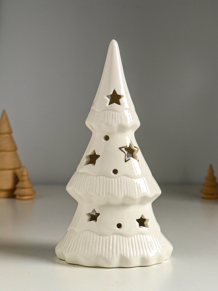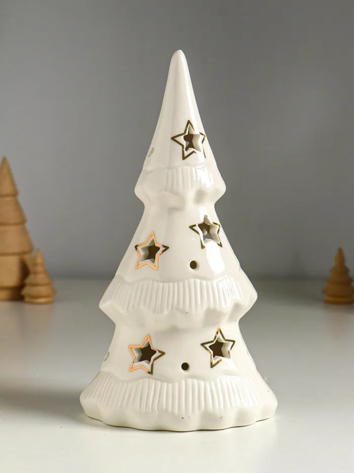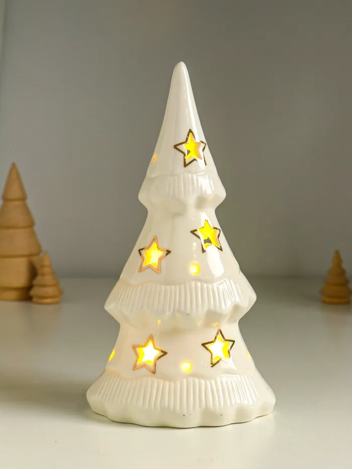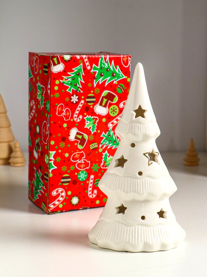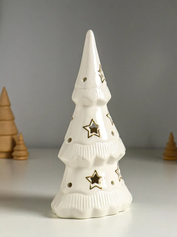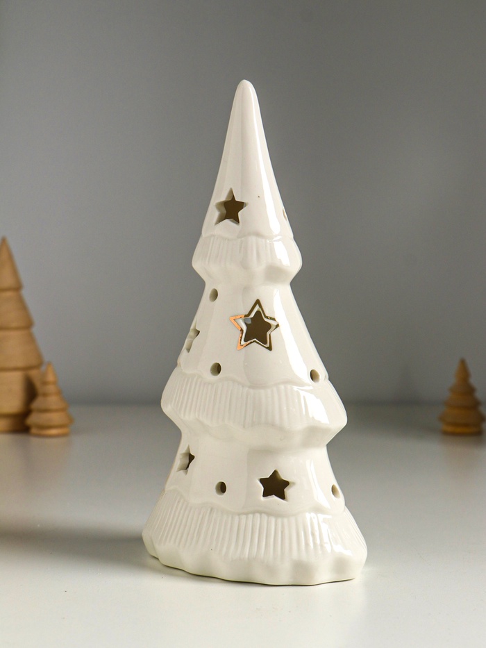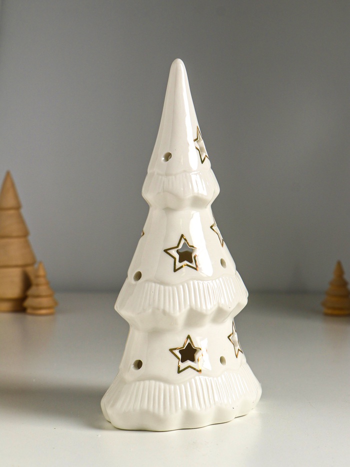 Фигурка светящаяся «Ёлочка и звёзды», керамика, белый с золотом, 10.7×6.8×20 см — Характеристики