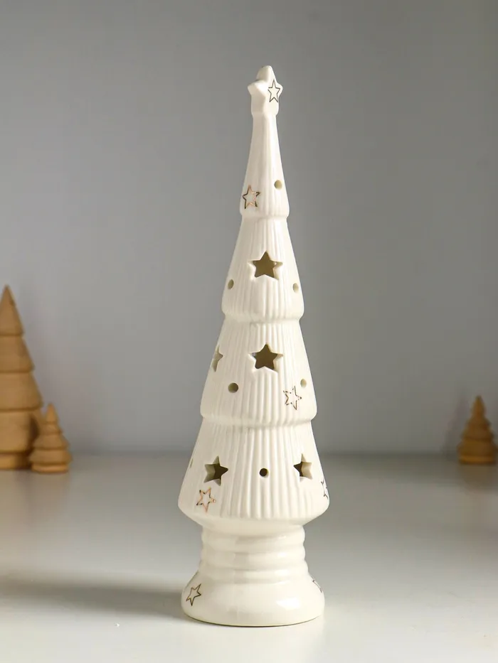 Фигурка светящаяся «Ёлочка со звёздами», керамика, белый с золотом, 7×7×24 см — Характеристики