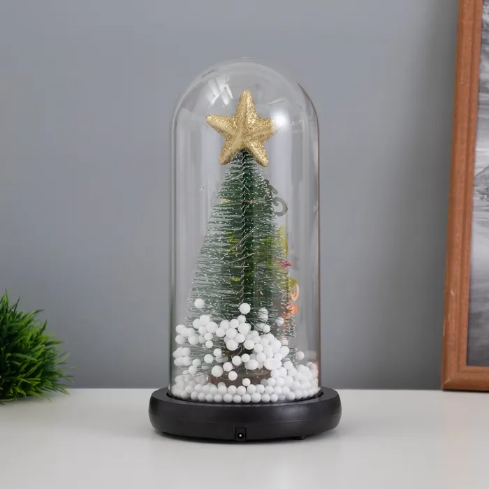 Фигурка светящаяся колба RISALUX «Ёлка с бантом», LED-ночник, 1.5 Вт, 3×AAA, чёрный, USB, 11×11×21см — Характеристики
