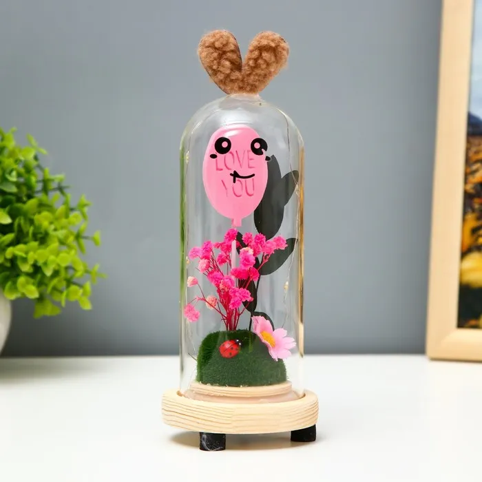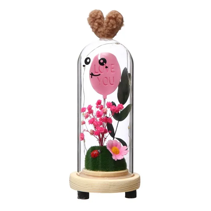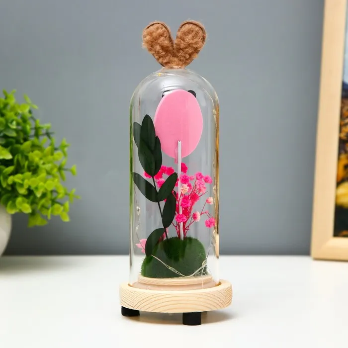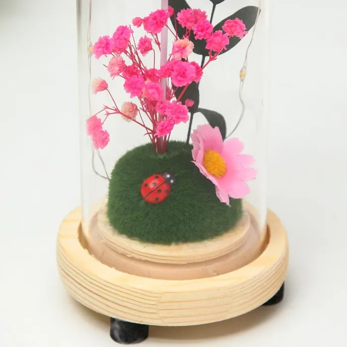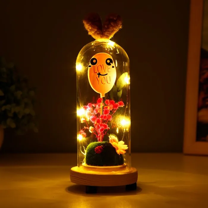 Великолепный ночник и подарок в одном аксессуаре. Этот вечный цветок не вянет и не требует особого ухода. Такие композиции часто применяют во флористике, упаковке подарков и дизайне интерьеров.